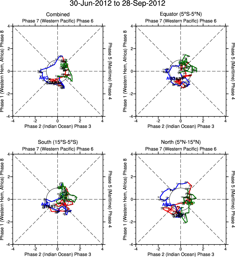 Wheeler and Hendon (2004) constructed the RMM index for monitoring the MJO. This index consists of the first two principal components (PCs) of OLR, 850-hPa zonal wind, and 200-hPa zonal wind averaged 15S-15N.