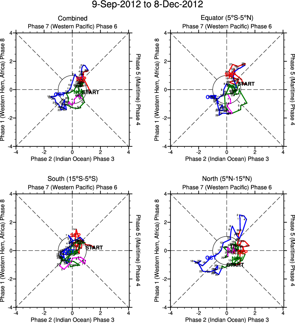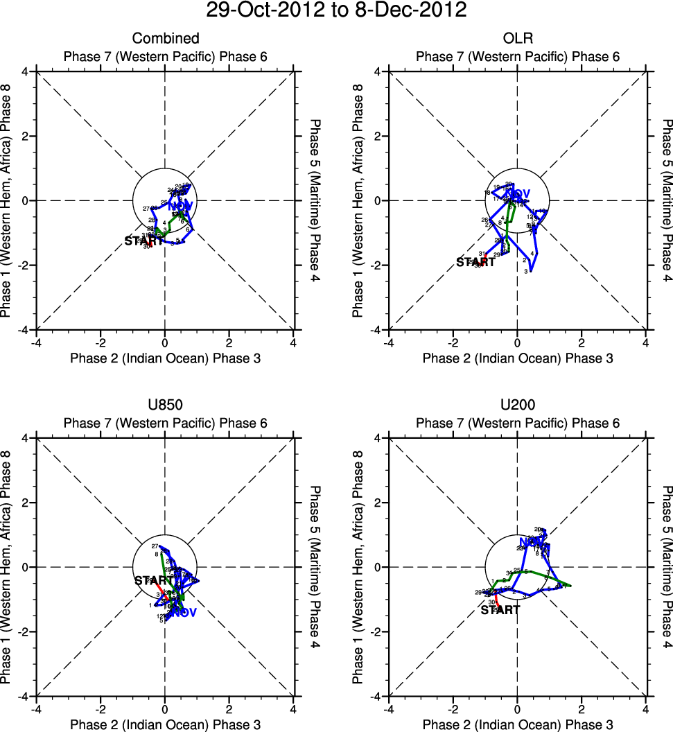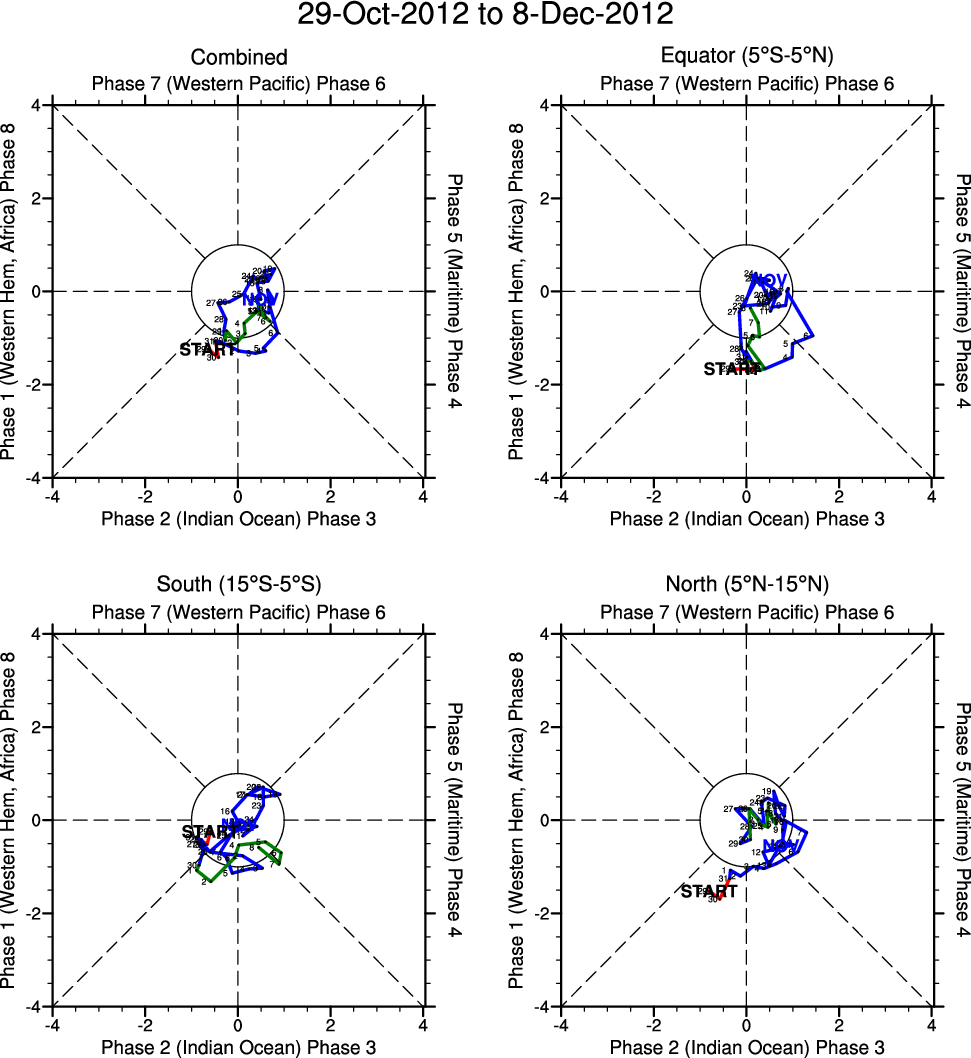 Wheeler and Hendon (2004) constructed the RMM index for monitoring the MJO. This index consists of the first two principal components (PCs) of OLR, 850-hPa zonal wind, and 200-hPa zonal wind averaged 15S-15N.