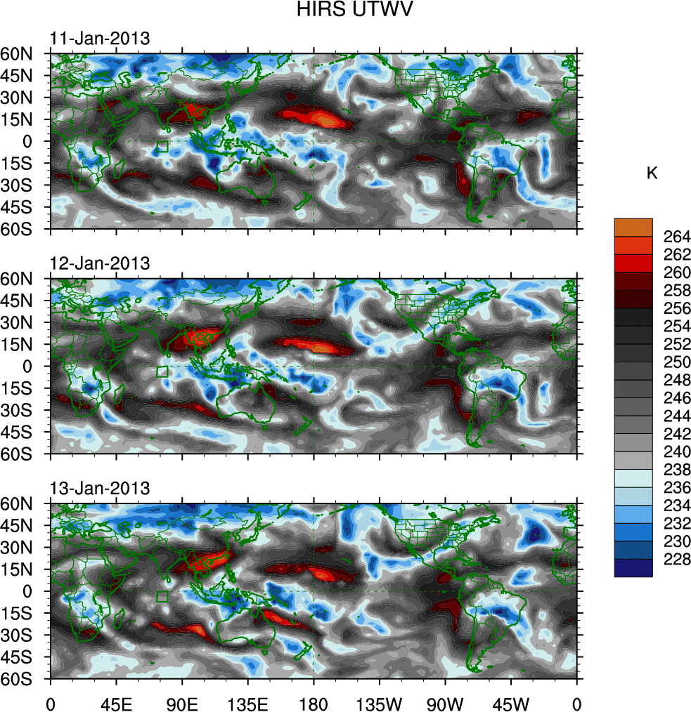 o   These brightness temperatures are observed with the HIRS sensor on the NOAA and MetOp polar-orbiting satellites.
