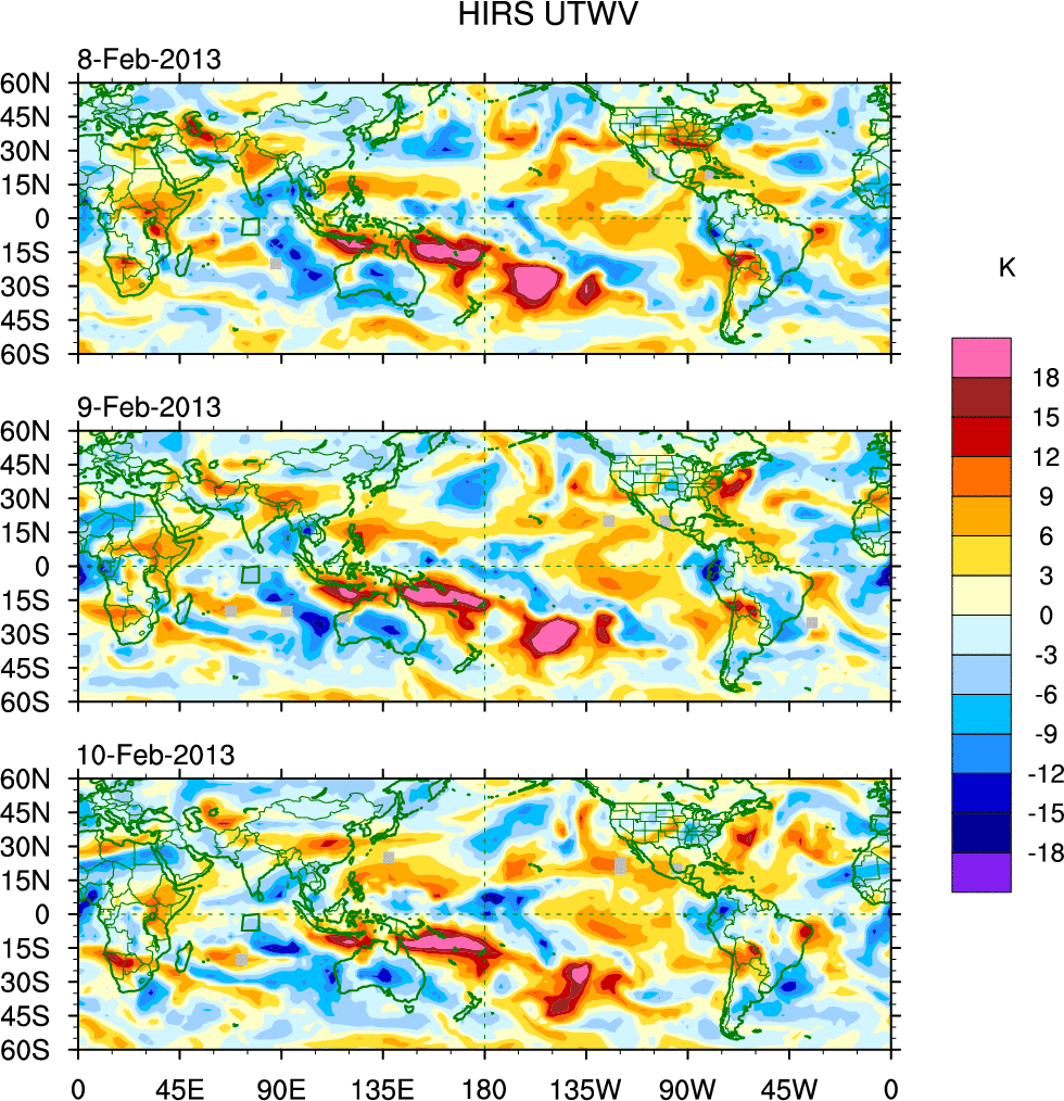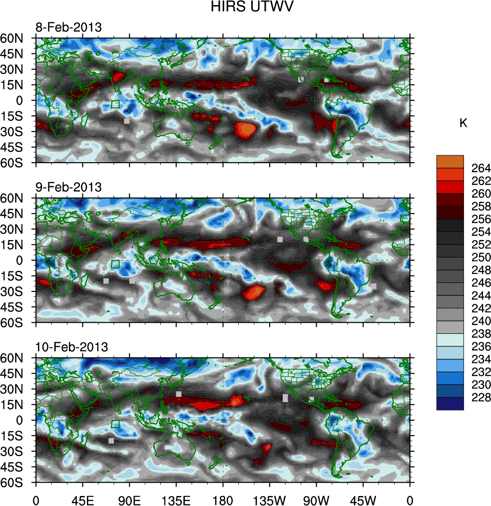 o   These brightness temperatures are observed with the HIRS sensor on the NOAA and MetOp polar-orbiting satellites.