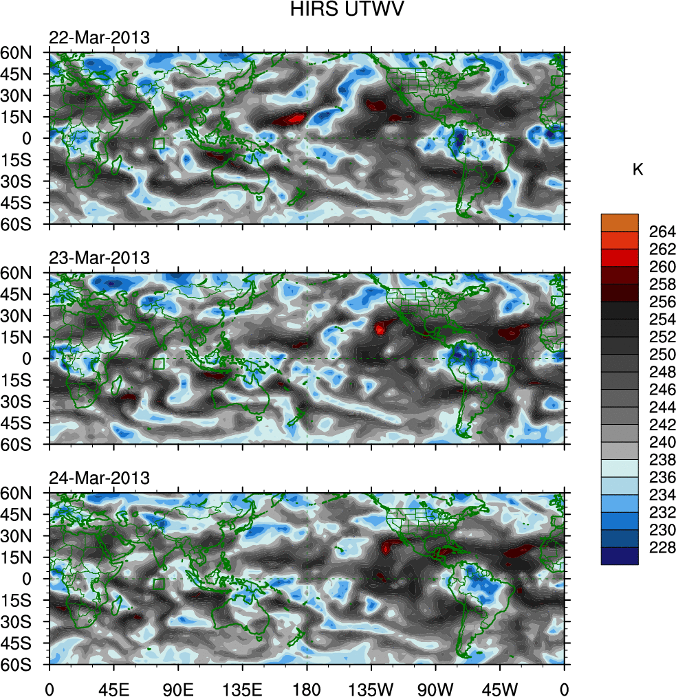 o   These brightness temperatures are observed with the HIRS sensor on the NOAA and MetOp polar-orbiting satellites.