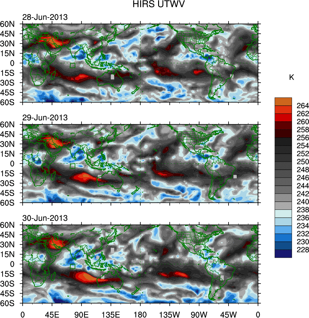 o   These brightness temperatures are observed with the HIRS sensor on the NOAA and MetOp polar-orbiting satellites.
