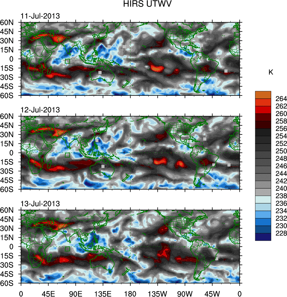 o   These brightness temperatures are observed with the HIRS sensor on the NOAA and MetOp polar-orbiting satellites.