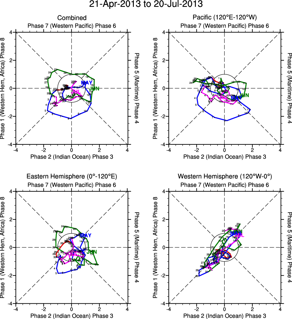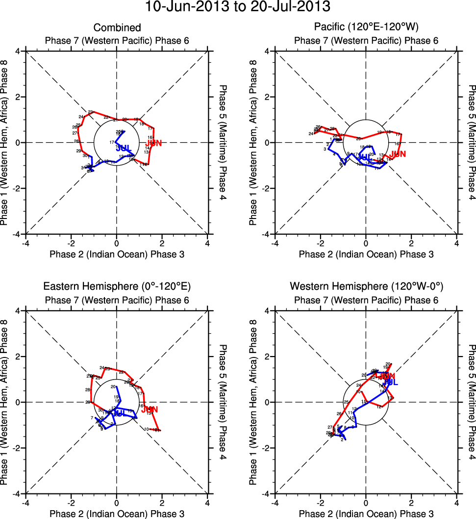 Wheeler and Hendon (2004) constructed the RMM index for monitoring the MJO. This index consists of the first two principal components (PCs) of OLR, 850-hPa zonal wind, and 200-hPa zonal wind averaged 15S-15N.