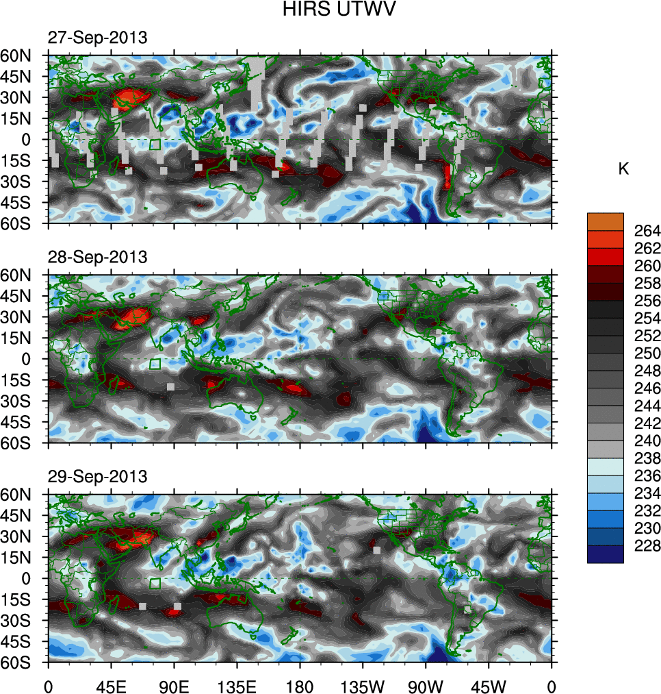 o   These brightness temperatures are observed with the HIRS sensor on the NOAA and MetOp polar-orbiting satellites.