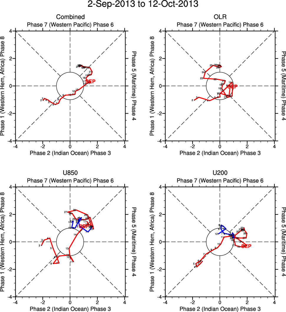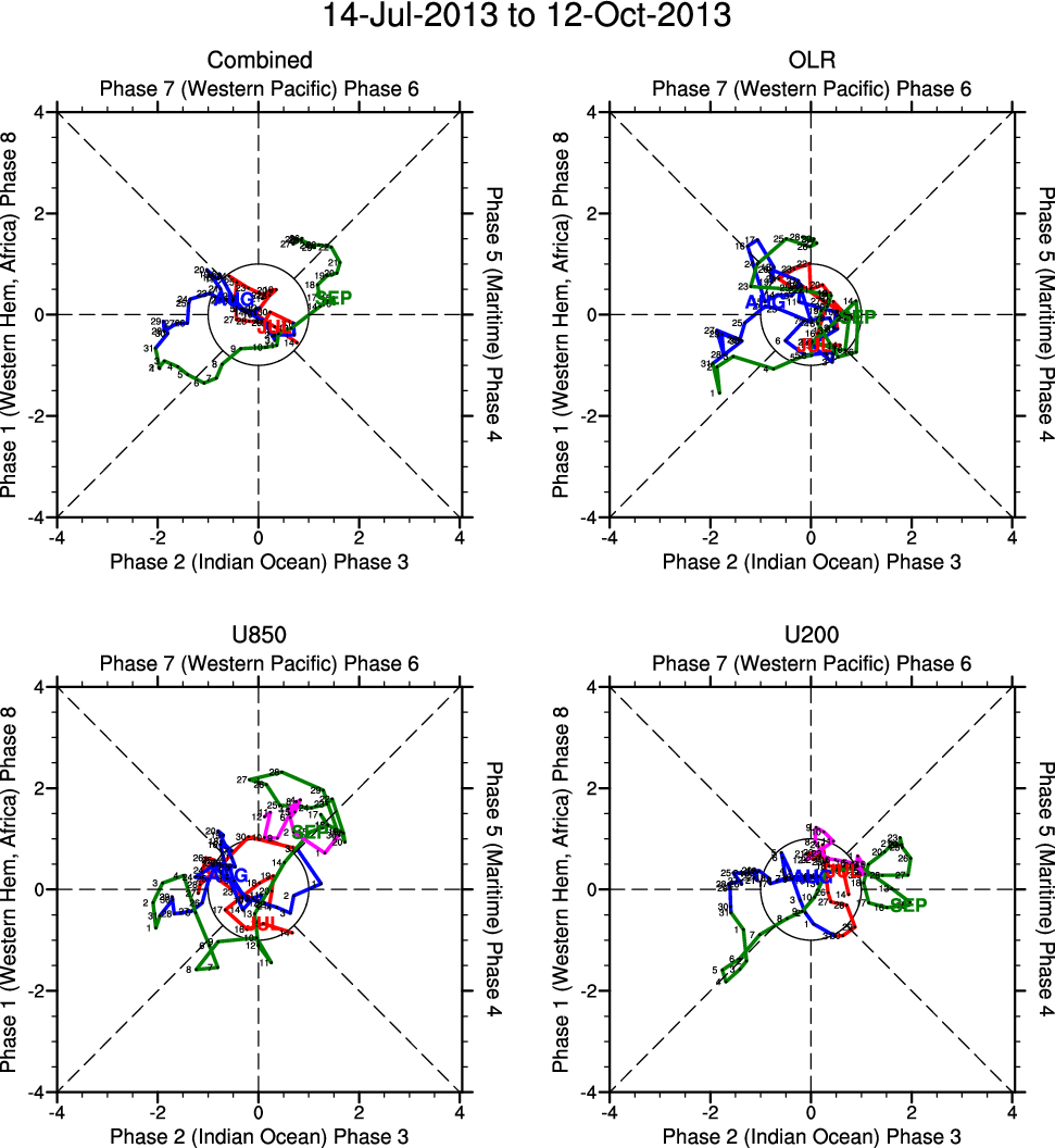 Wheeler and Hendon (2004) constructed the RMM index for monitoring the MJO. This index consists of the first two principal components (PCs) of OLR, 850-hPa zonal wind, and 200-hPa zonal wind averaged 15S-15N.