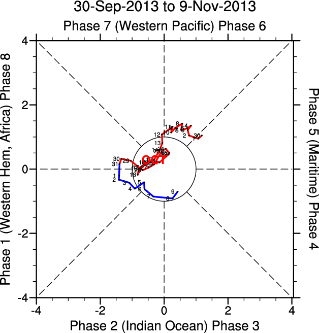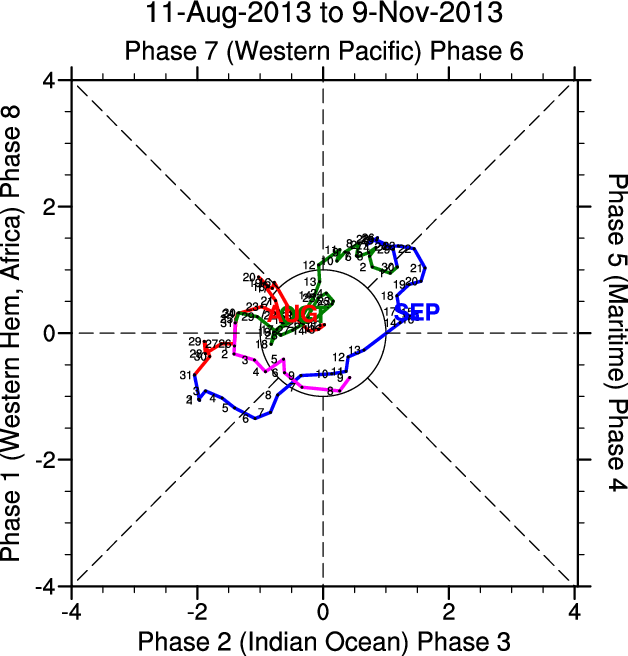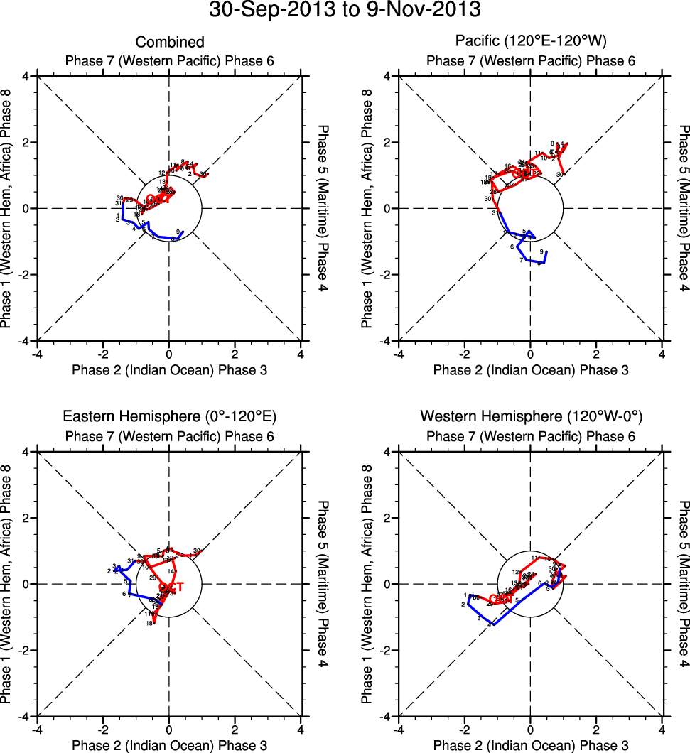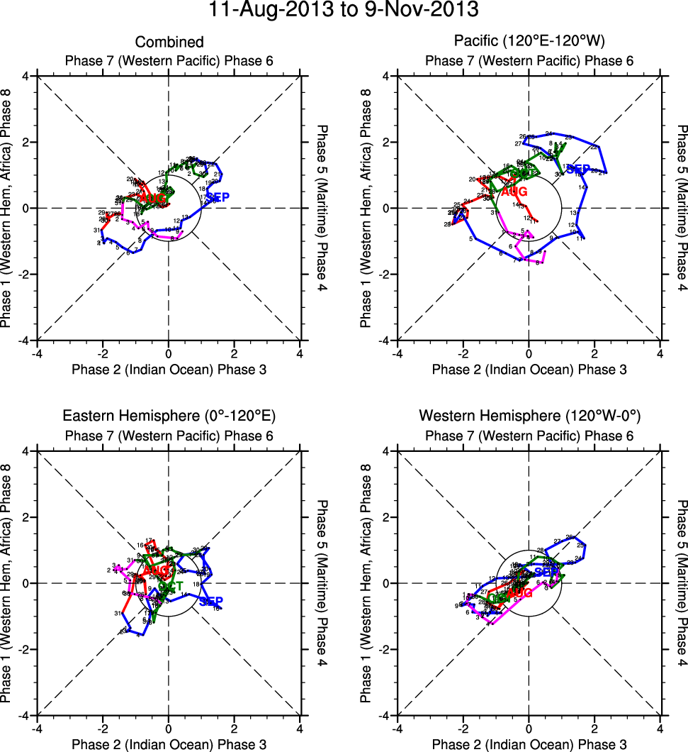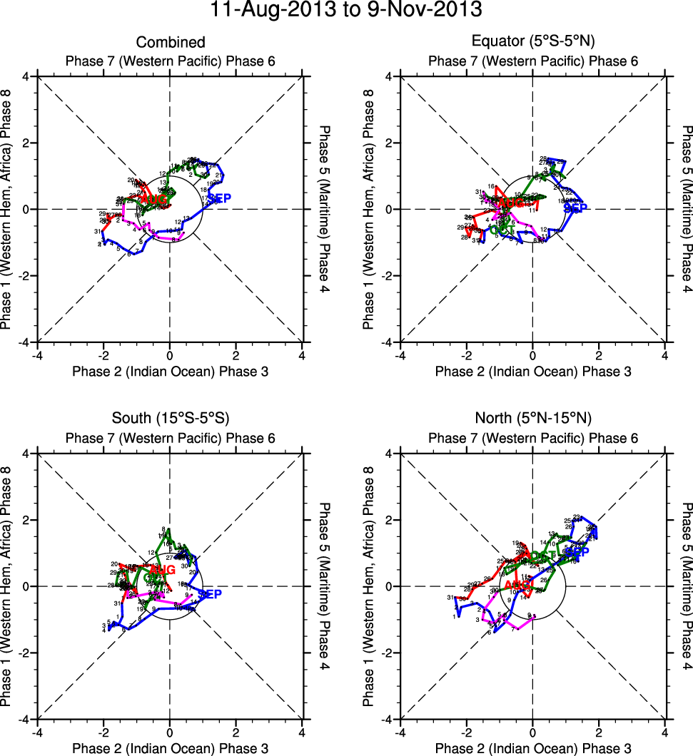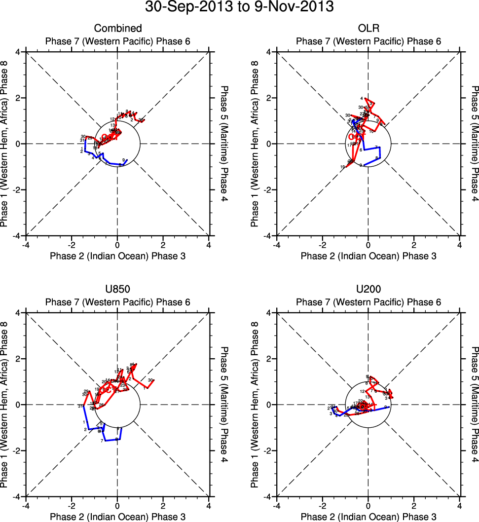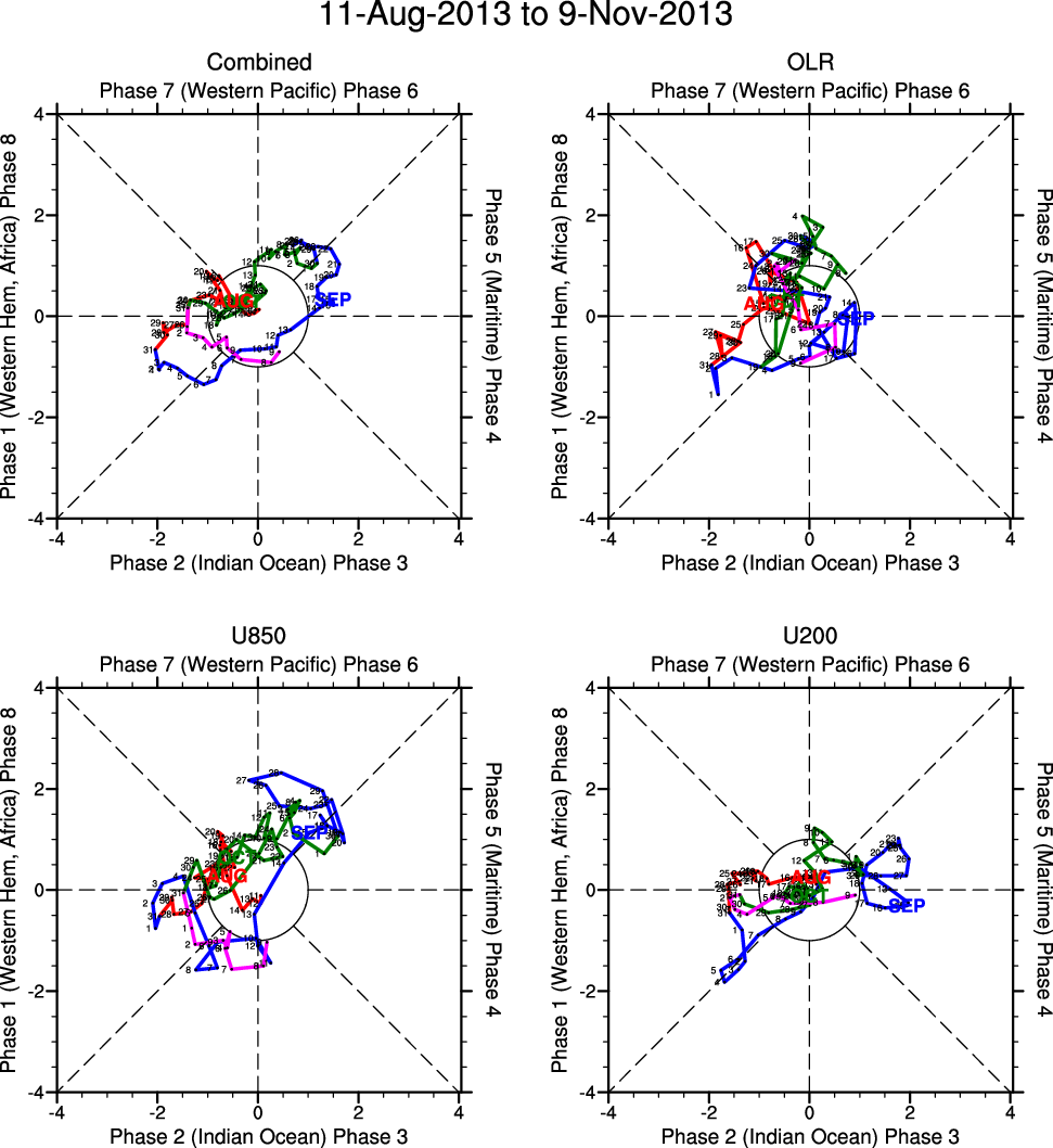 Wheeler and Hendon (2004) constructed the RMM index for monitoring the MJO. This index consists of the first two principal components (PCs) of OLR, 850-hPa zonal wind, and 200-hPa zonal wind averaged 15S-15N.