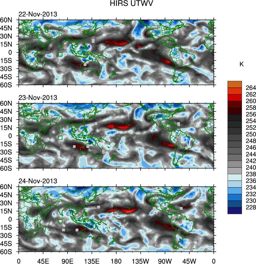 o   These brightness temperatures are observed with the HIRS sensor on the NOAA and MetOp polar-orbiting satellites.