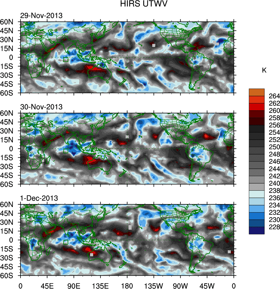 o   These brightness temperatures are observed with the HIRS sensor on the NOAA and MetOp polar-orbiting satellites.