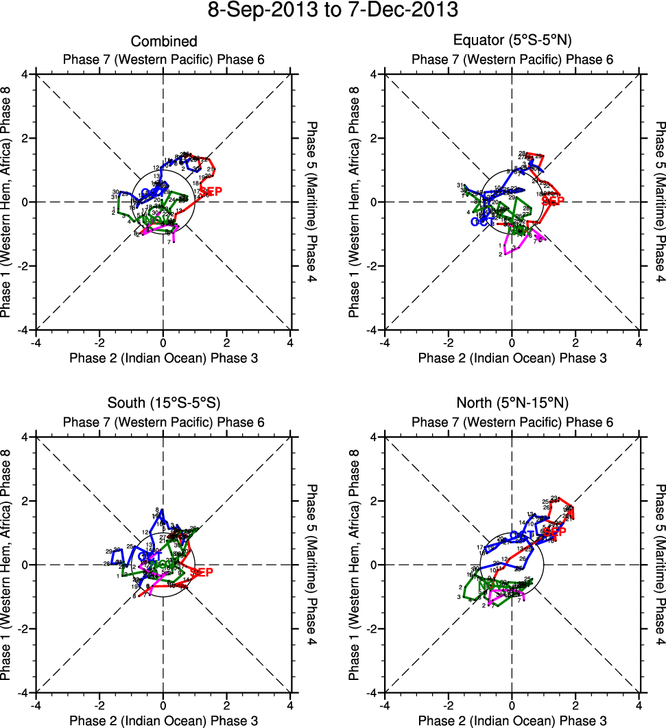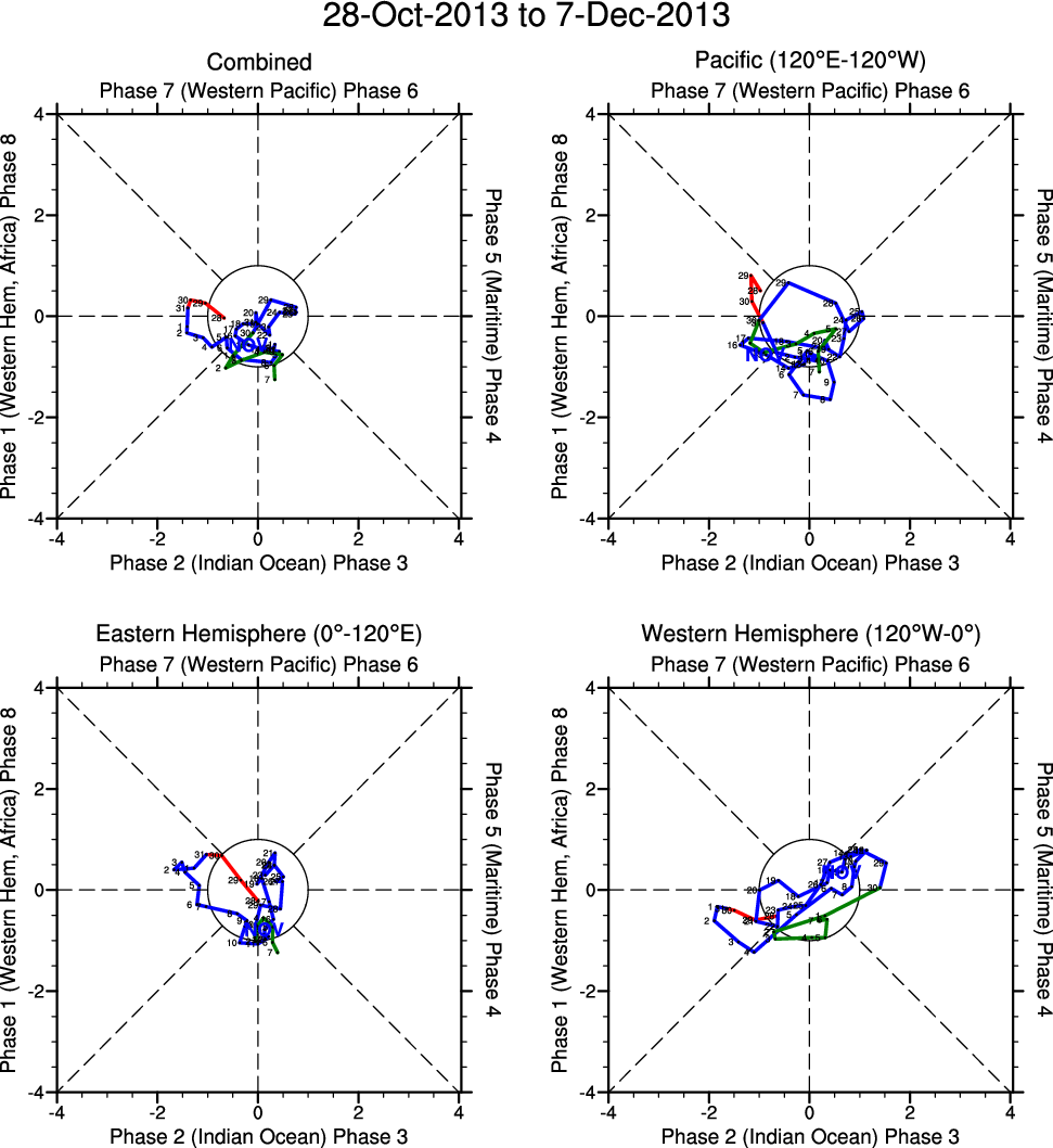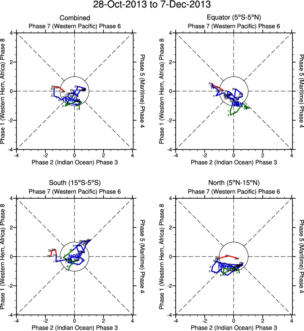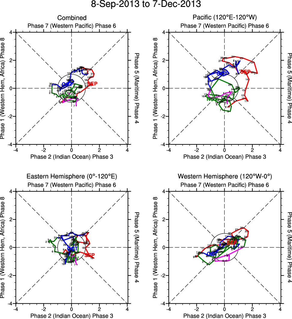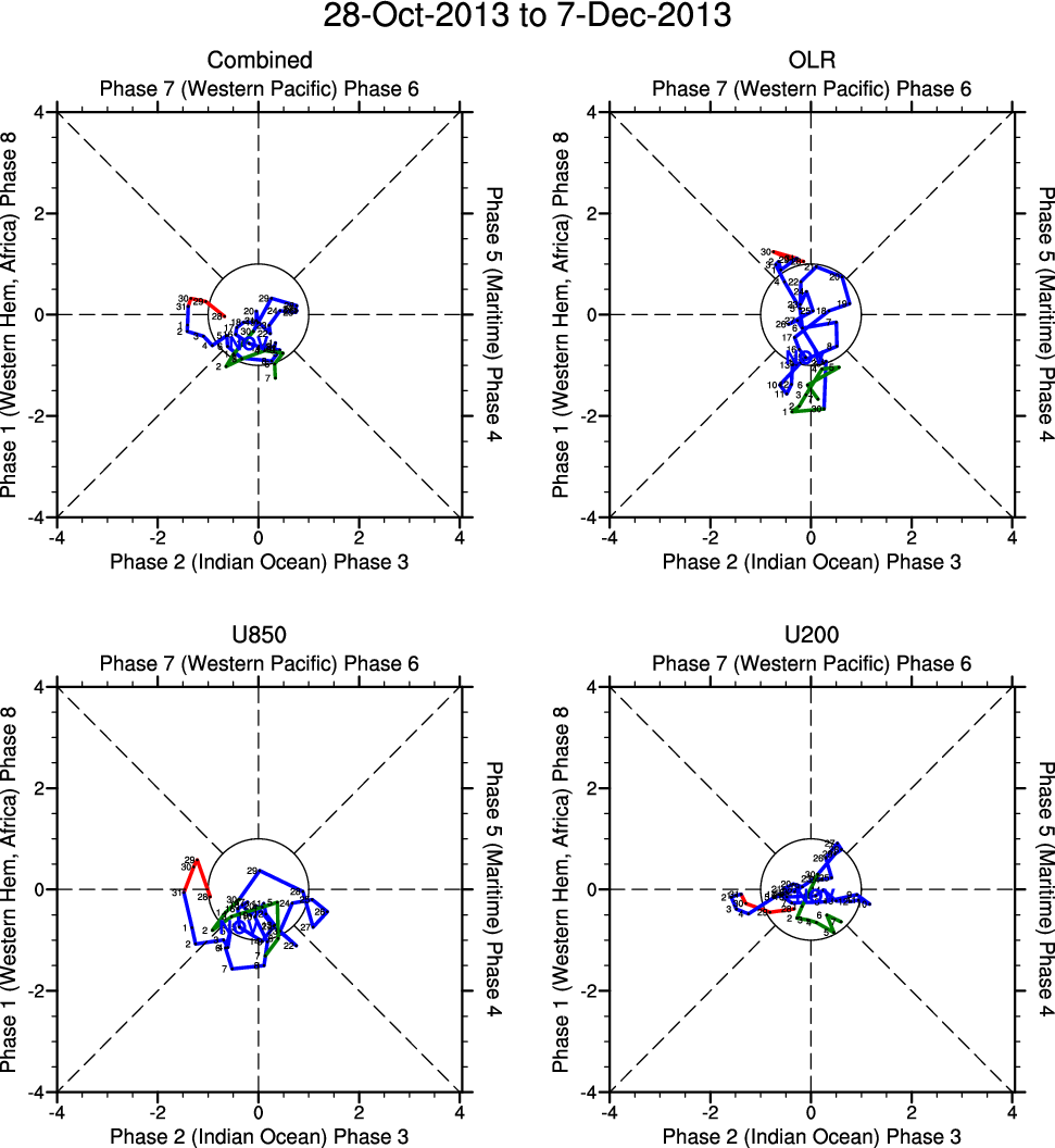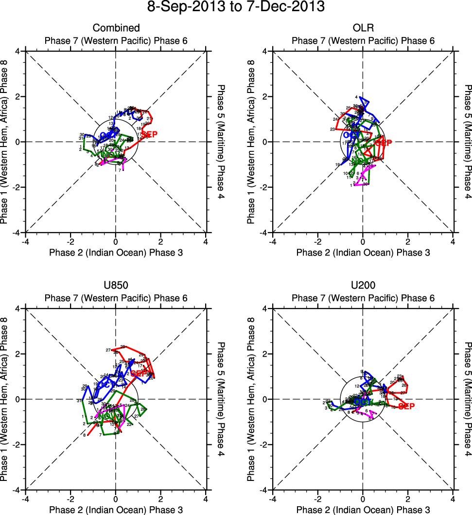 Wheeler and Hendon (2004) constructed the RMM index for monitoring the MJO. This index consists of the first two principal components (PCs) of OLR, 850-hPa zonal wind, and 200-hPa zonal wind averaged 15S-15N.