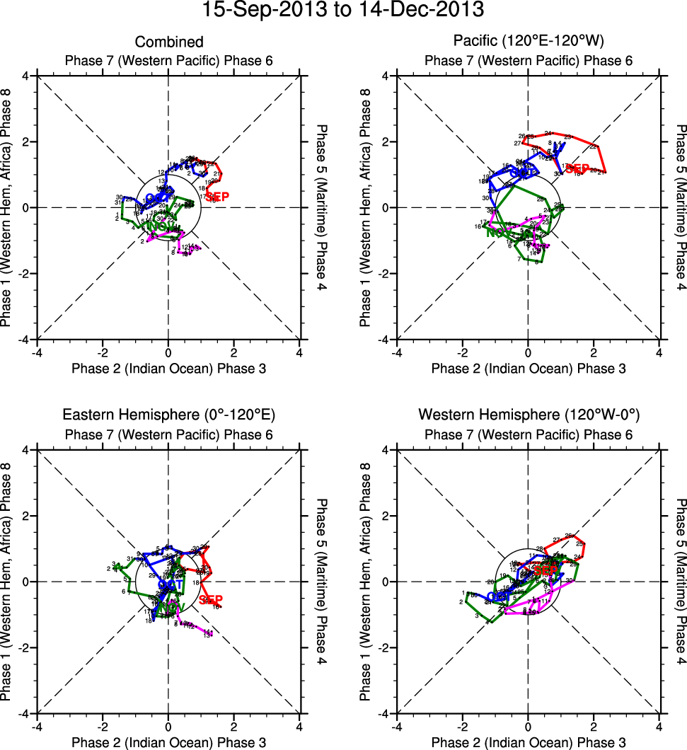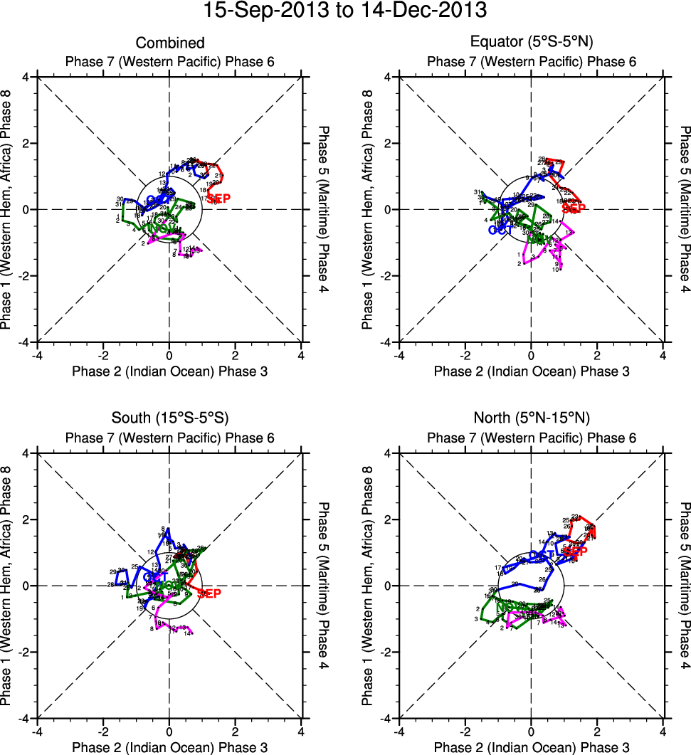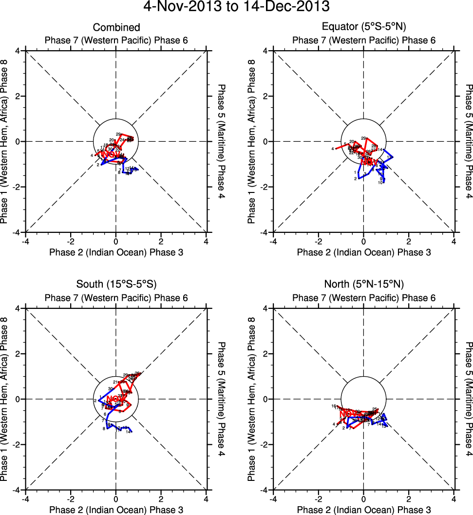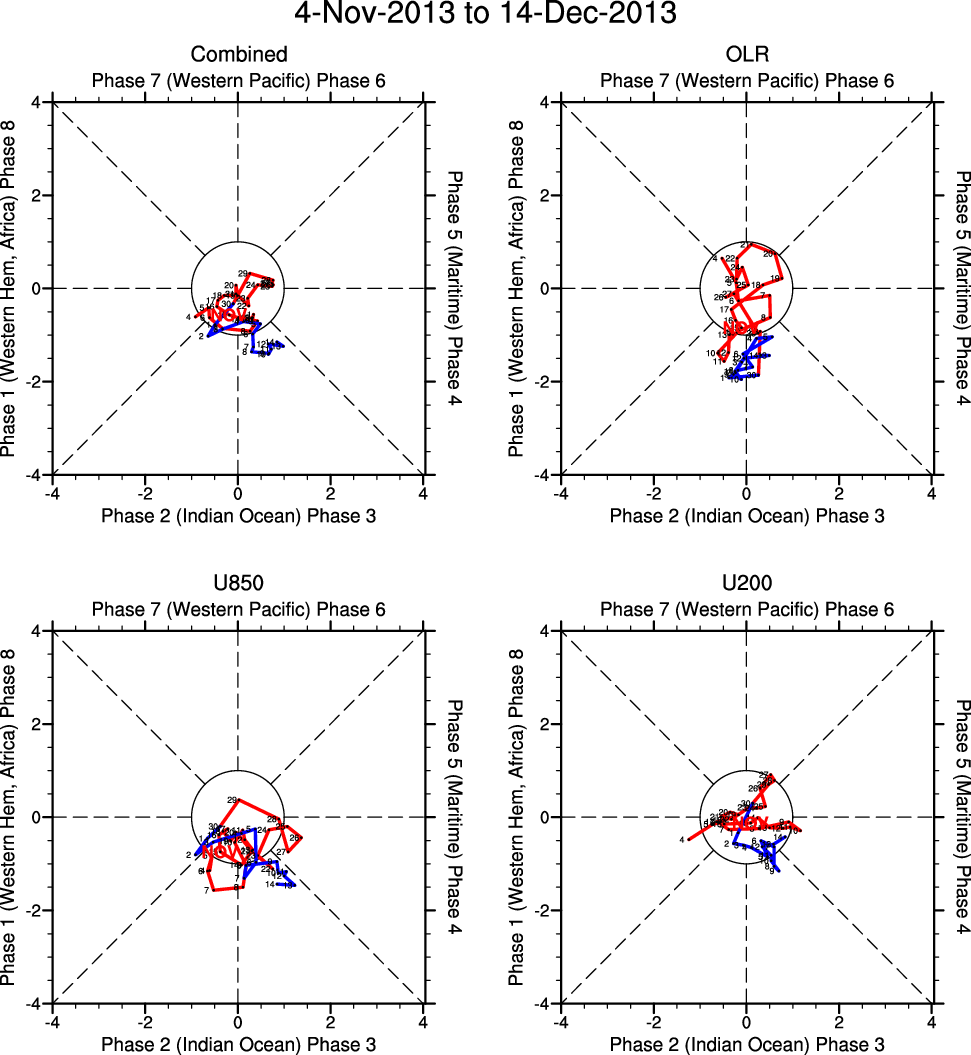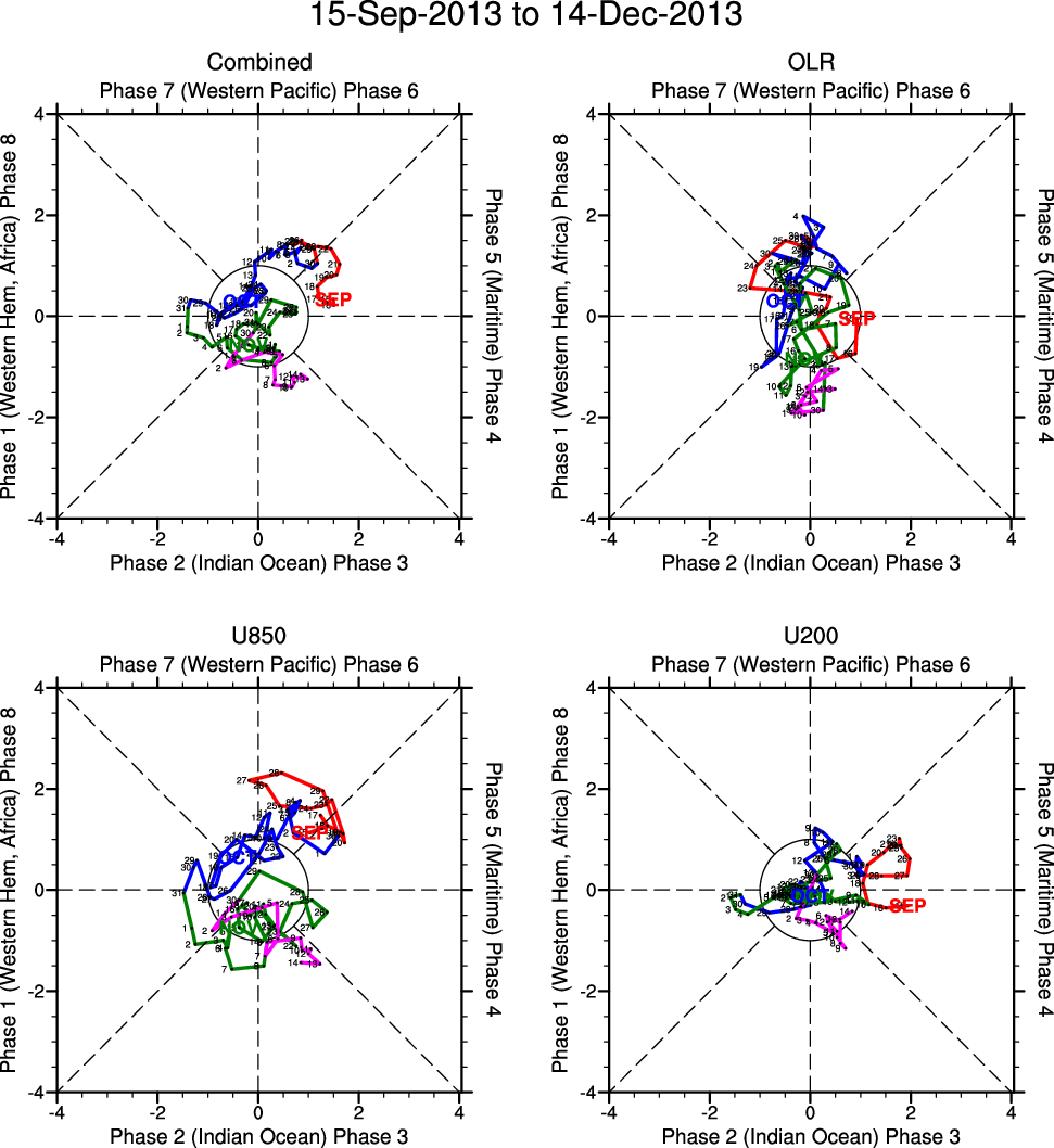 Wheeler and Hendon (2004) constructed the RMM index for monitoring the MJO. This index consists of the first two principal components (PCs) of OLR, 850-hPa zonal wind, and 200-hPa zonal wind averaged 15S-15N.