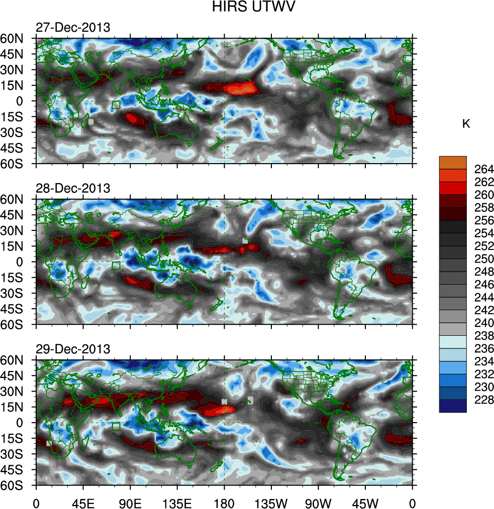 o   These brightness temperatures are observed with the HIRS sensor on the NOAA and MetOp polar-orbiting satellites.