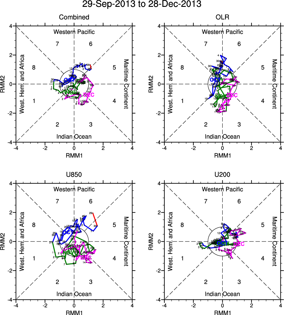 Wheeler and Hendon (2004) constructed the RMM index for monitoring the MJO. This index consists of the first two principal components (PCs) of OLR, 850-hPa zonal wind, and 200-hPa zonal wind averaged 15S-15N.