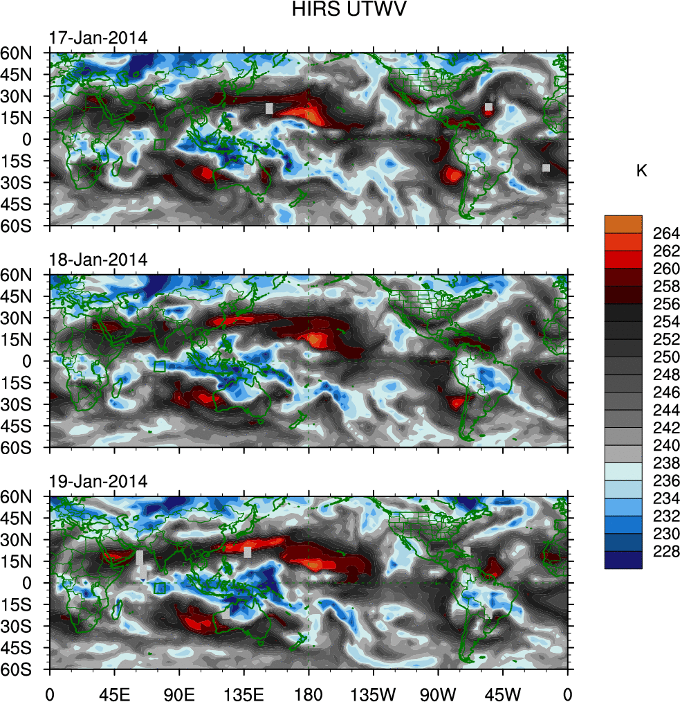 o   These brightness temperatures are observed with the HIRS sensor on the NOAA and MetOp polar-orbiting satellites.