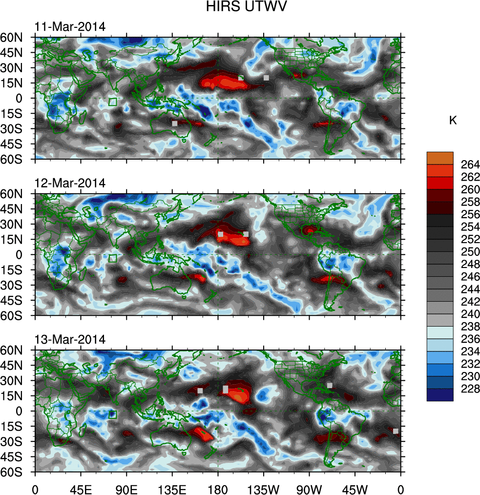 o   These brightness temperatures are observed with the HIRS sensor on the NOAA and MetOp polar-orbiting satellites.