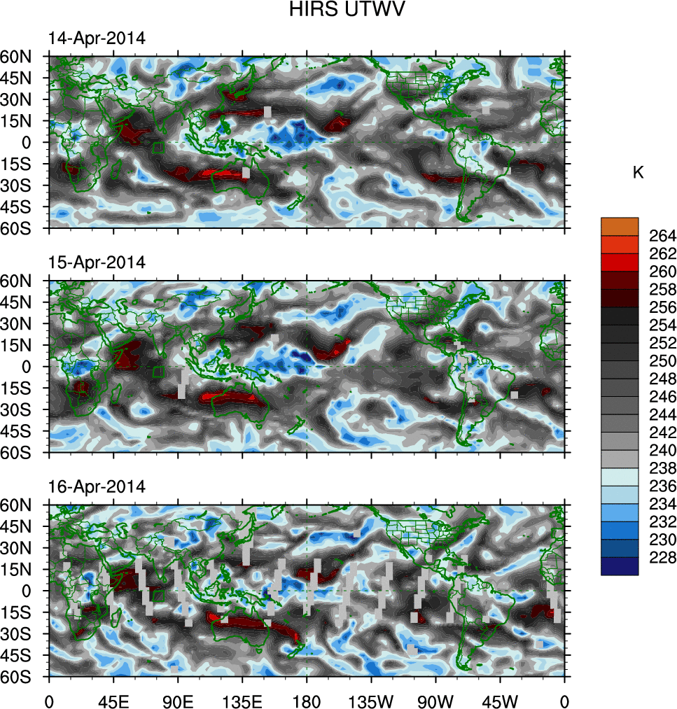 o   These brightness temperatures are observed with the HIRS sensor on the NOAA and MetOp polar-orbiting satellites.