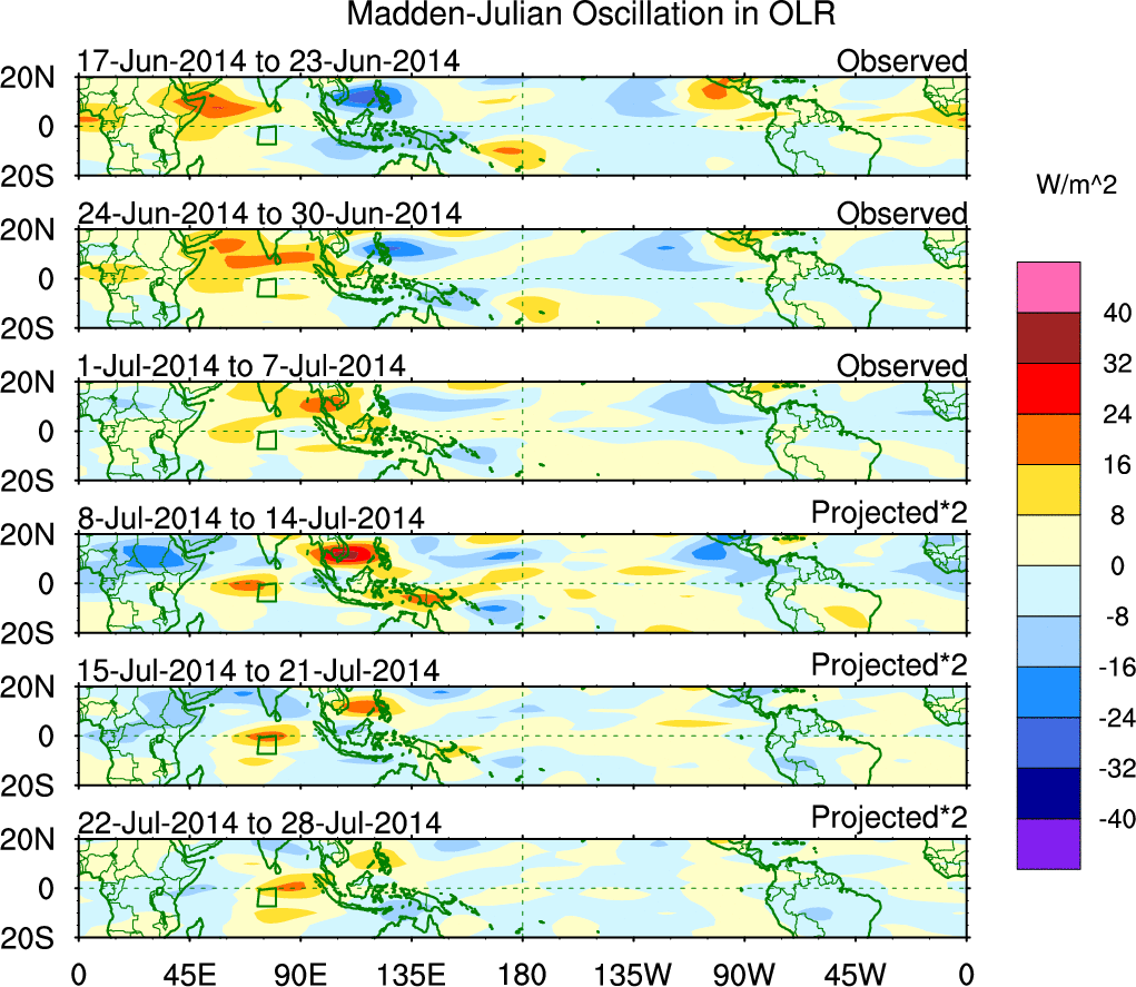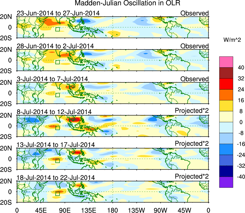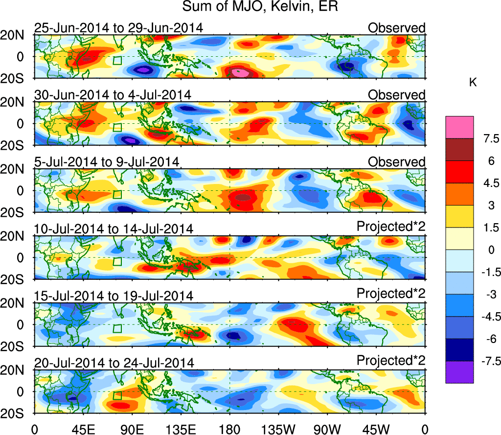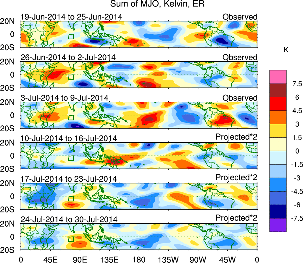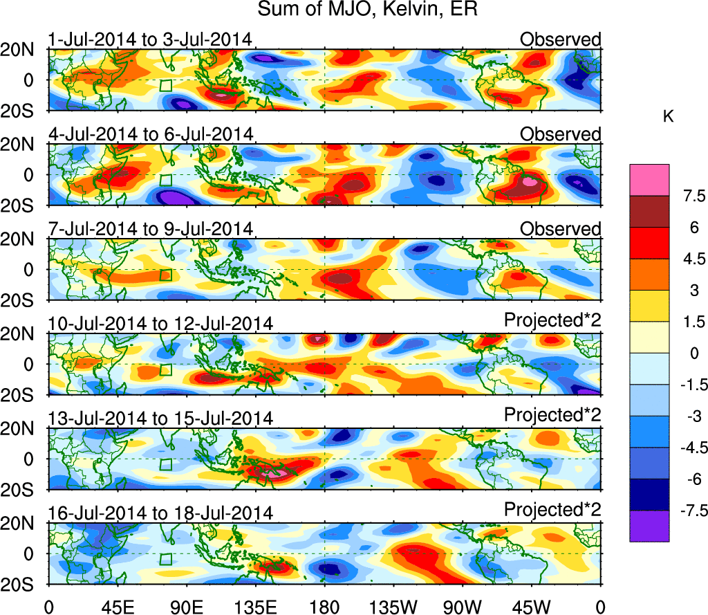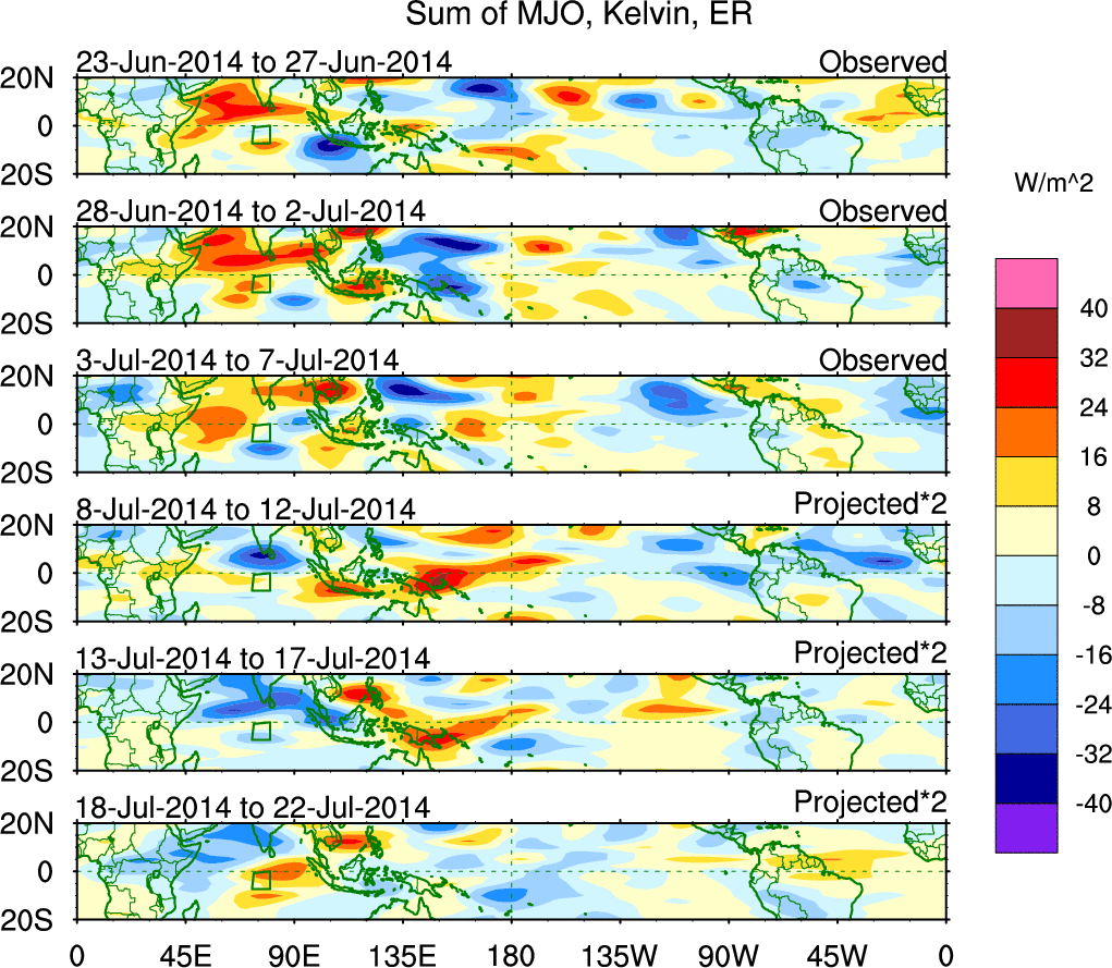 Julian Oscillation (MJO) Blue Eastward 0–9 30–96 n/a Kiladis et al. (2005 JAS)
