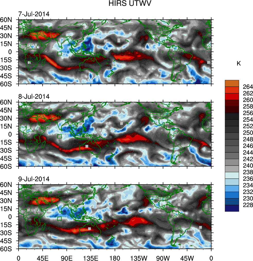 • These brightness temperatures are observed with the HIRS sensor on the NOAA and MetOp polar-orbiting satellites.