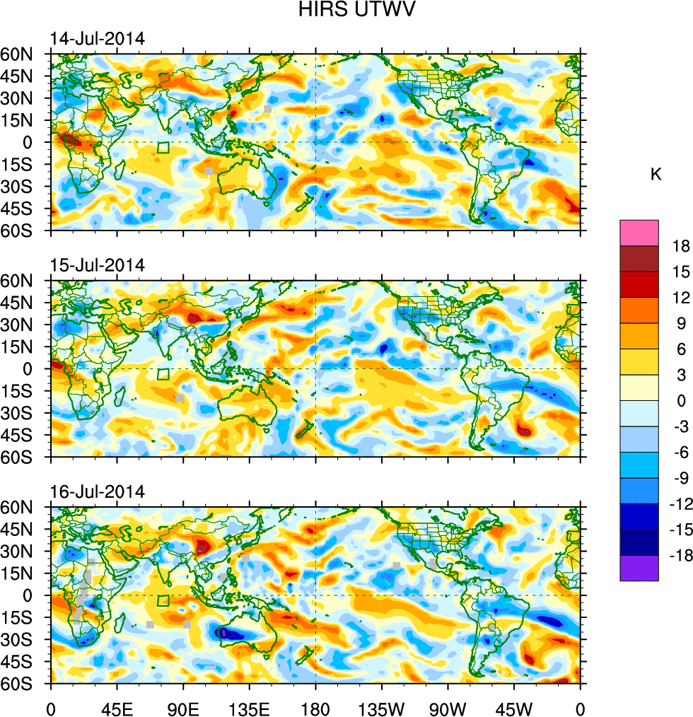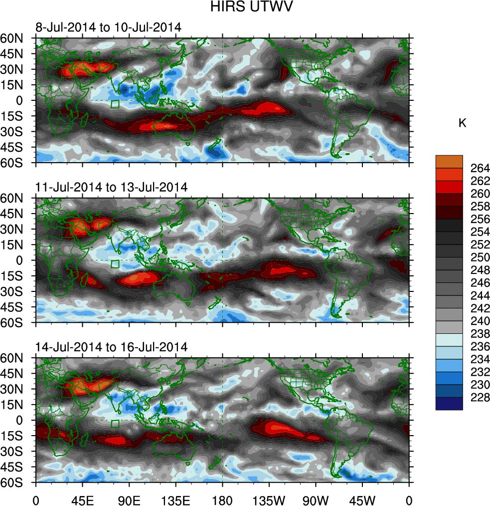 • These brightness temperatures are observed with the HIRS sensor on the NOAA and MetOp polar-orbiting satellites.