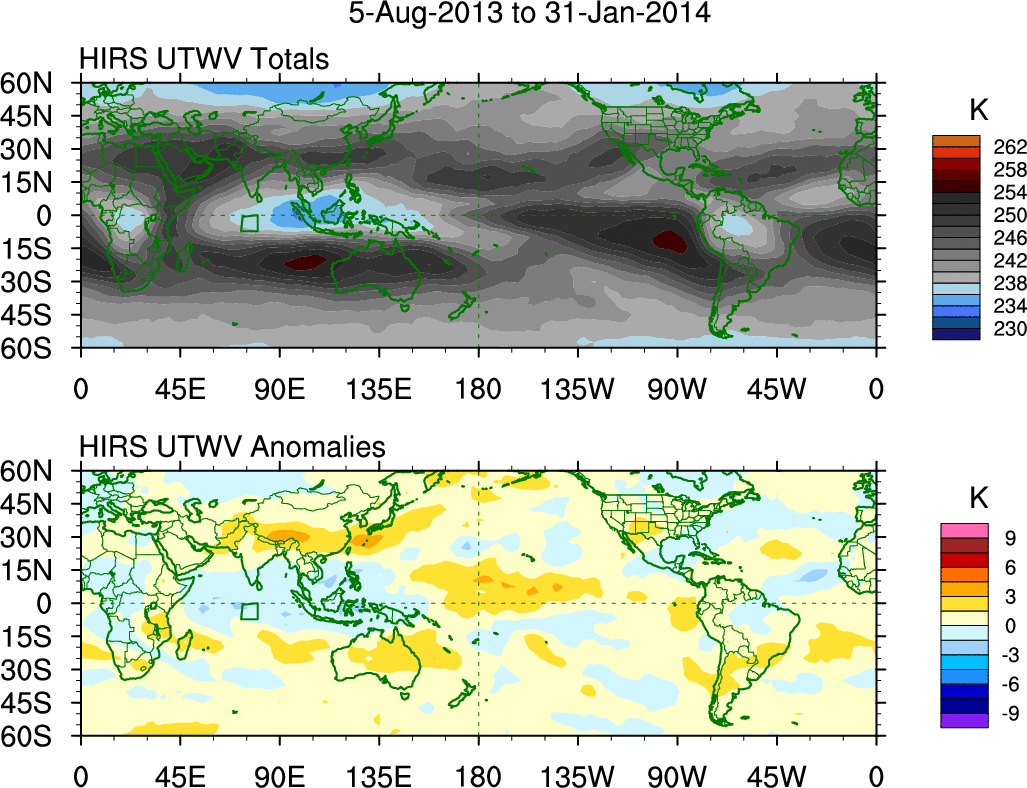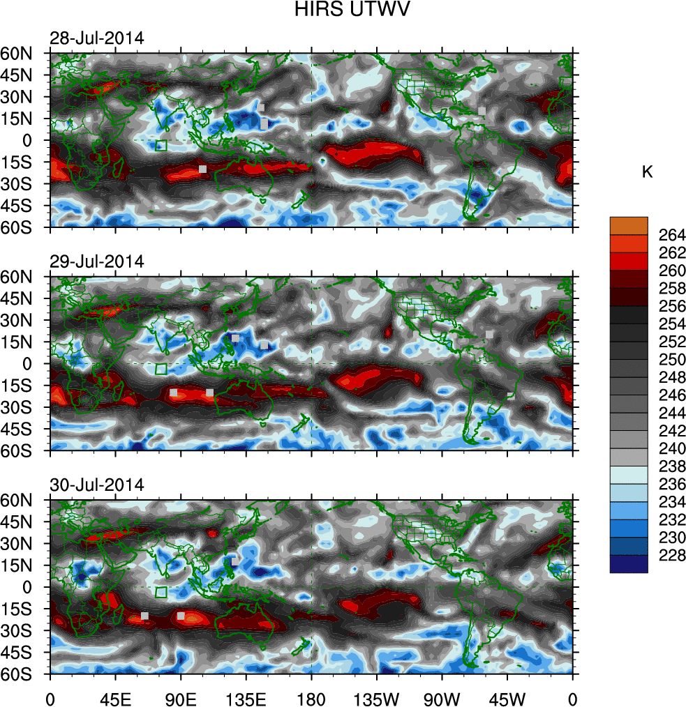 • These brightness temperatures are observed with the HIRS sensor on the NOAA and MetOp polar-orbiting satellites.
