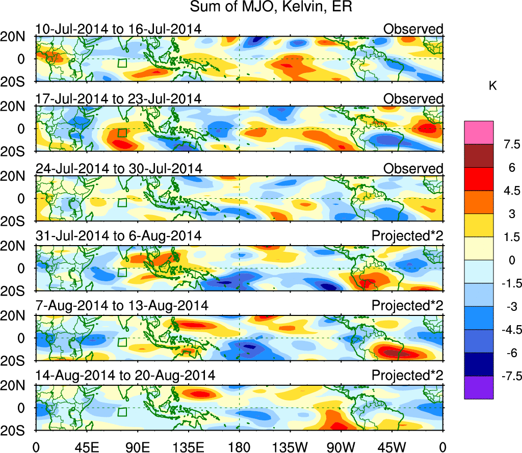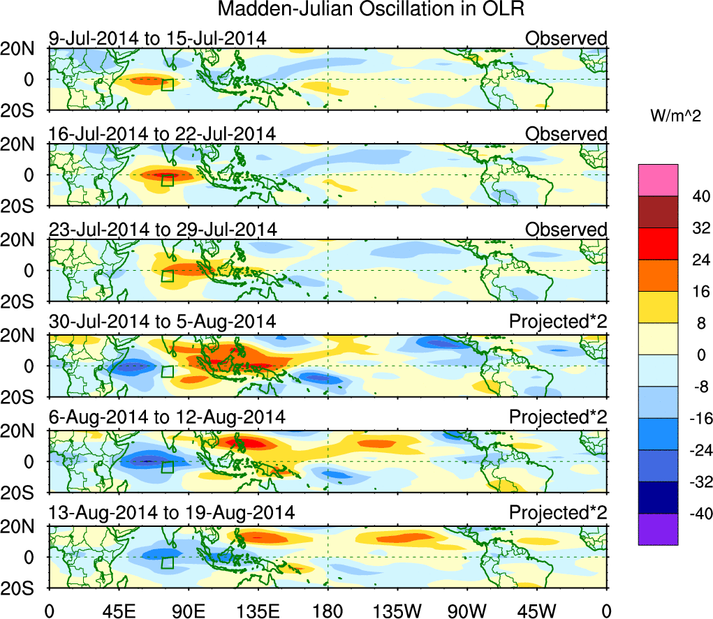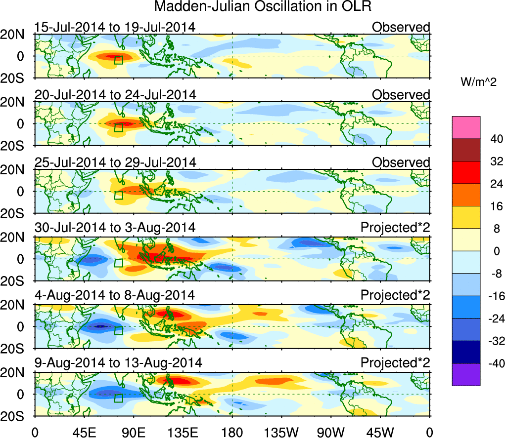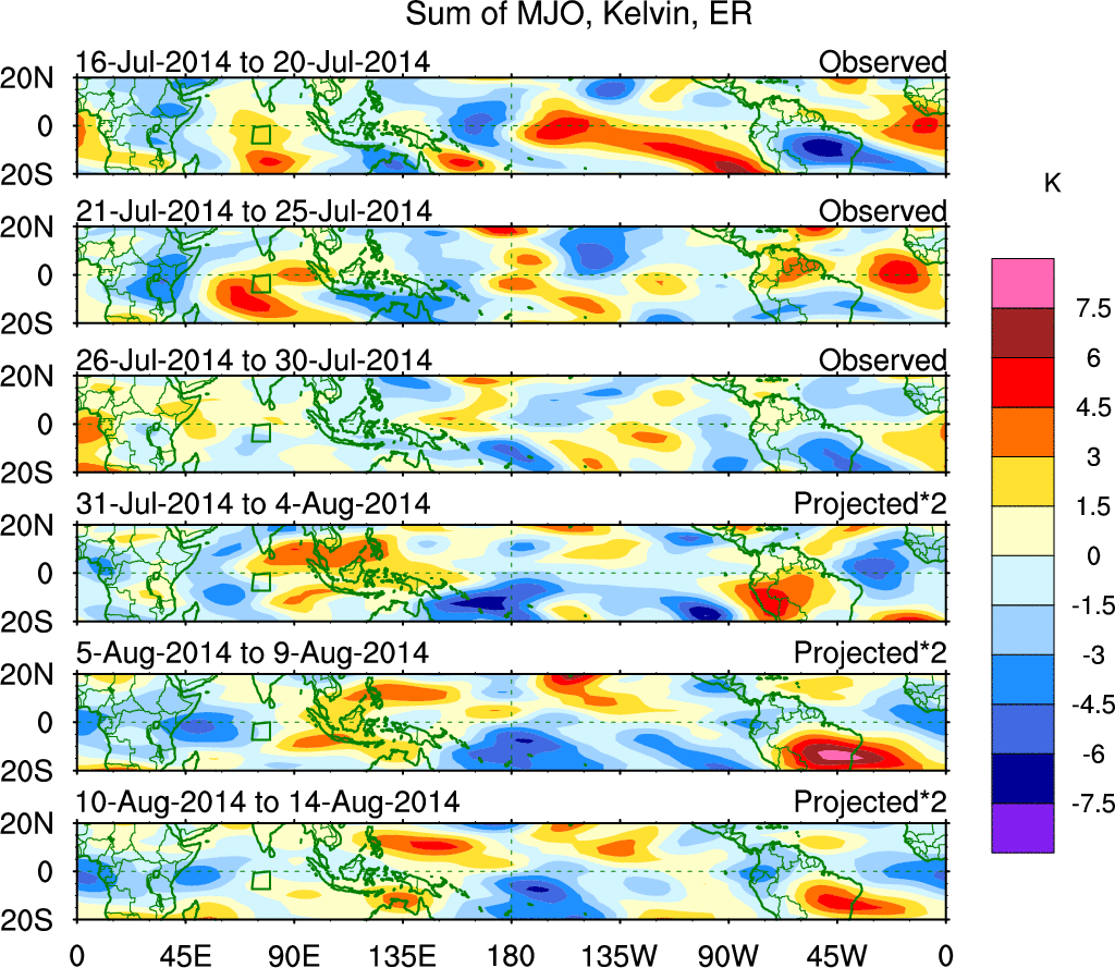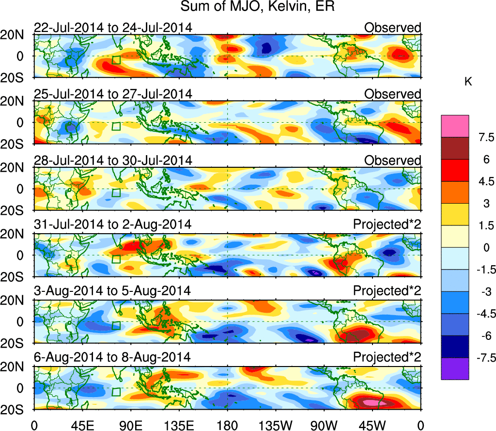 Julian Oscillation (MJO) Blue Eastward 0–9 30–96 n/a Kiladis et al. (2005 JAS)