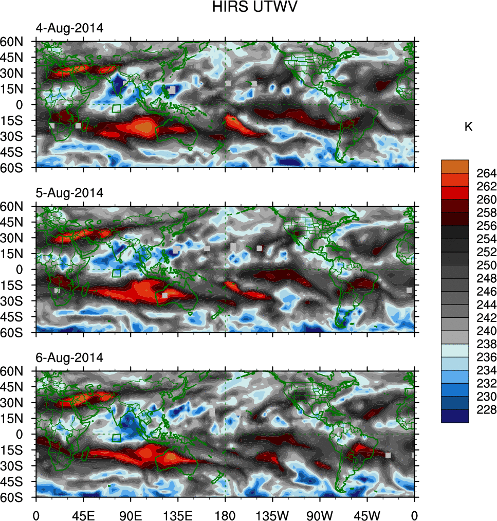 • These brightness temperatures are observed with the HIRS sensor on the NOAA and MetOp polar-orbiting satellites.