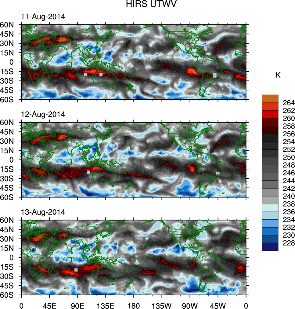 • These brightness temperatures are observed with the HIRS sensor on the NOAA and MetOp polar-orbiting satellites.