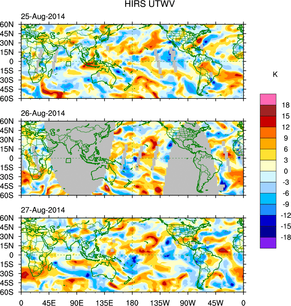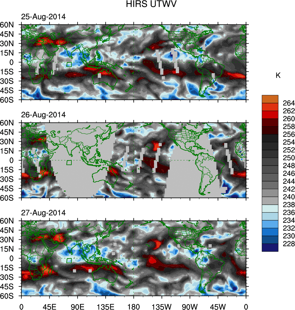 • These brightness temperatures are observed with the HIRS sensor on the NOAA and MetOp polar-orbiting satellites.