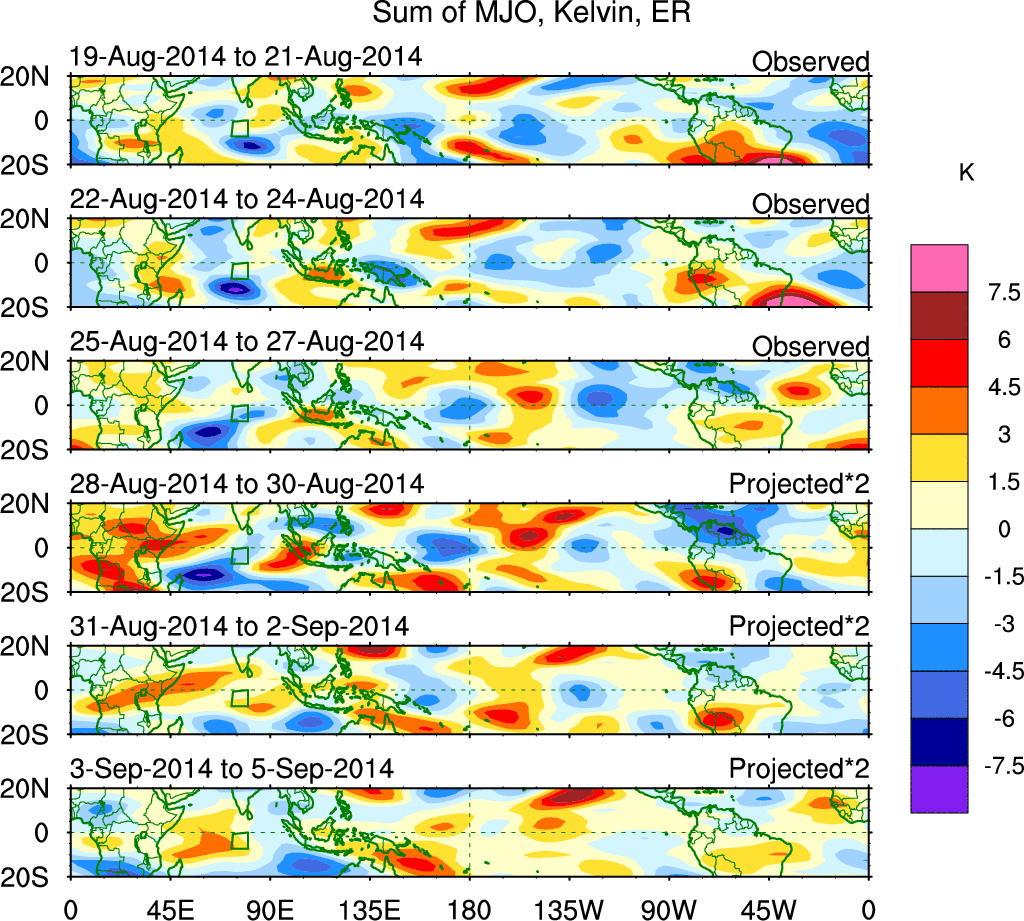 Julian Oscillation (MJO) Blue Eastward 0–9 30–96 n/a Kiladis et al. (2005 JAS)