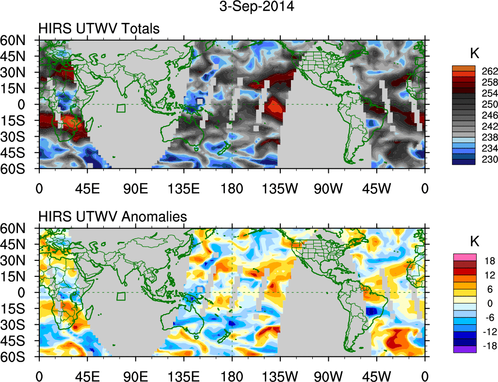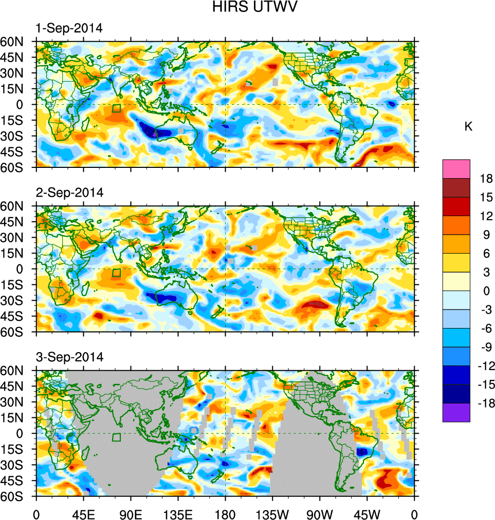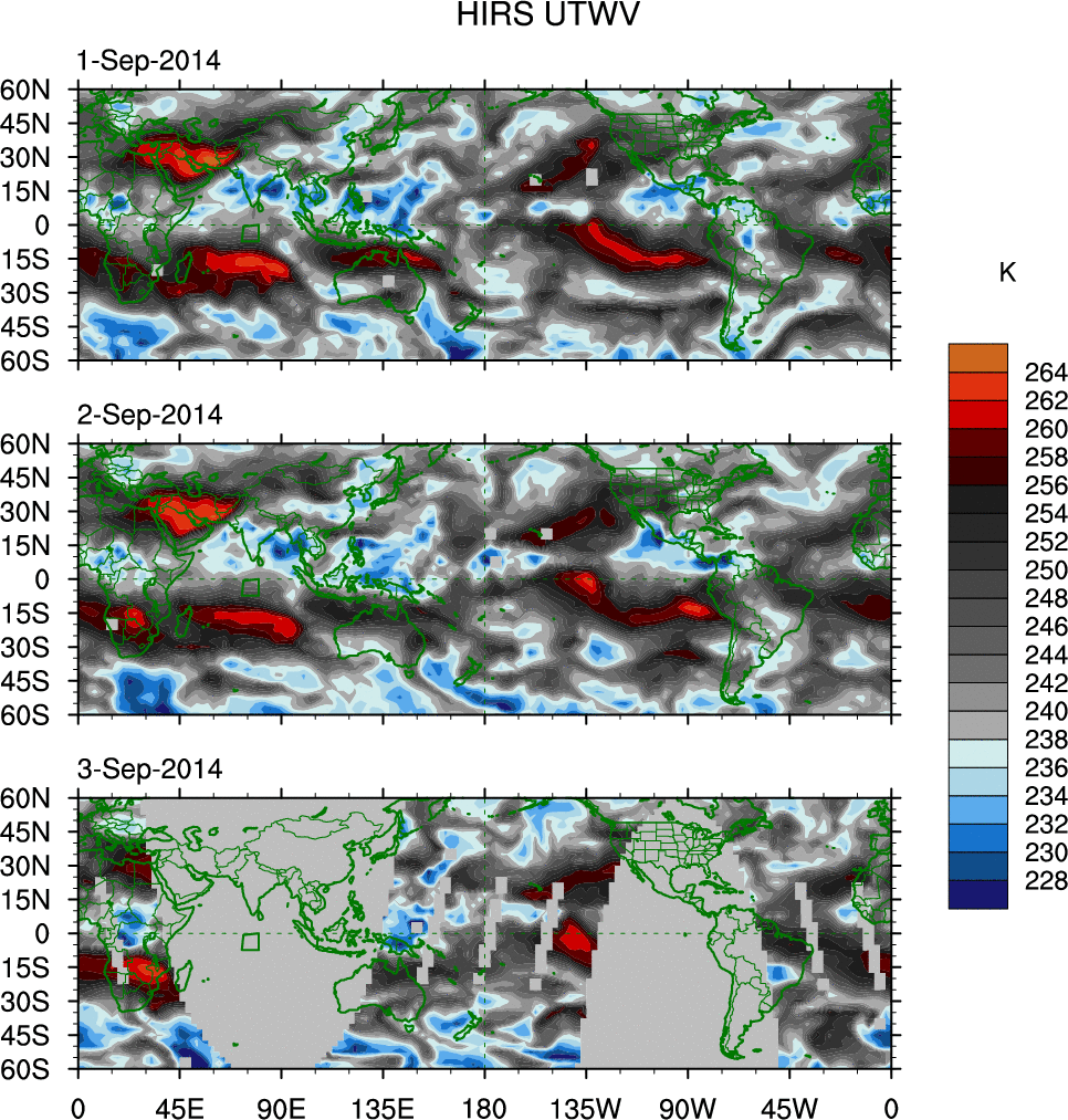 • These brightness temperatures are observed with the HIRS sensor on the NOAA and MetOp polar-orbiting satellites.