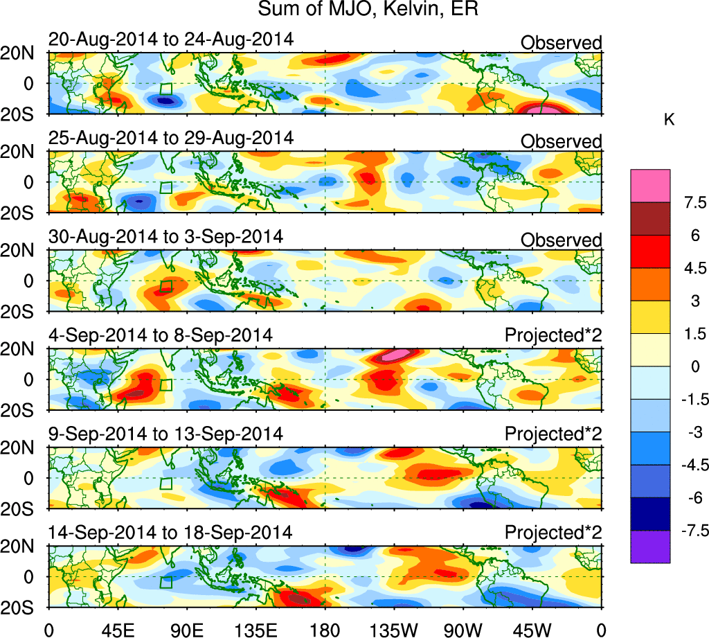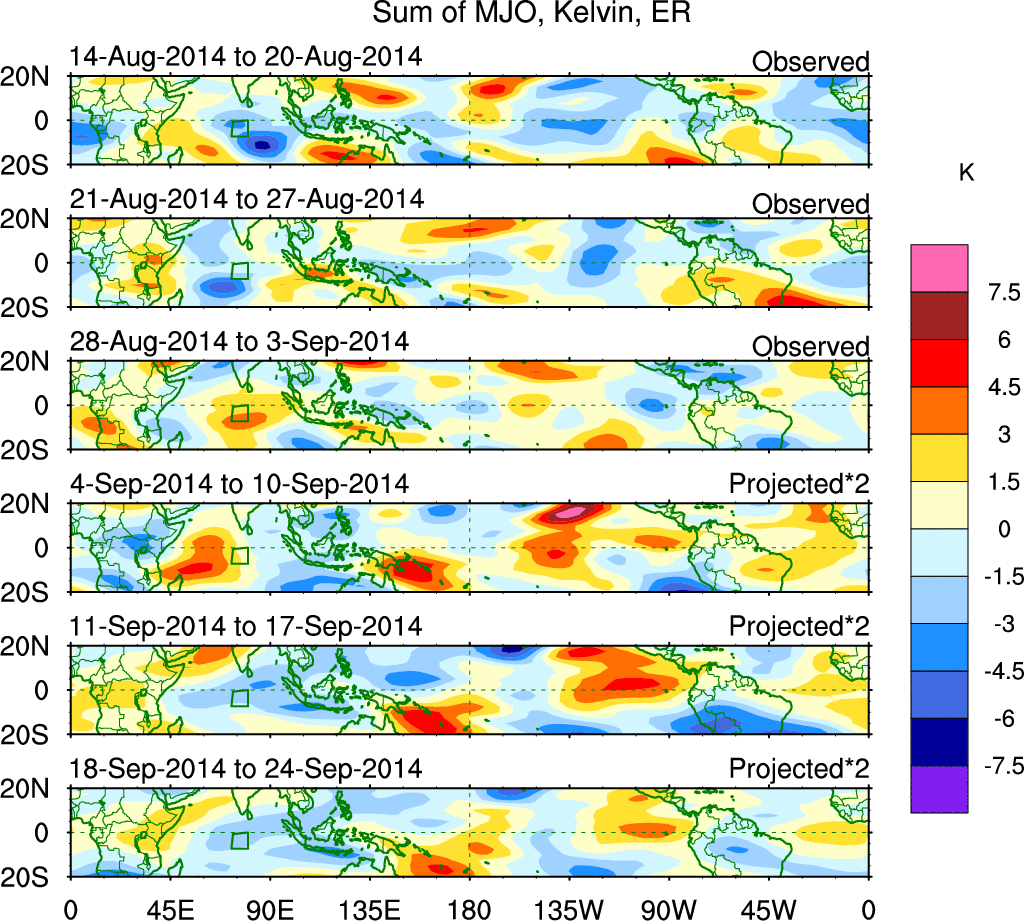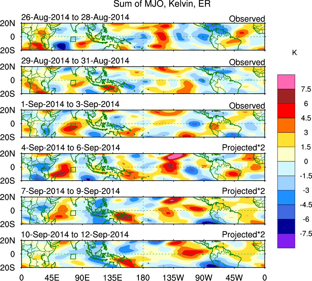 Julian Oscillation (MJO) Blue Eastward 0–9 30–96 n/a Kiladis et al. (2005 JAS)