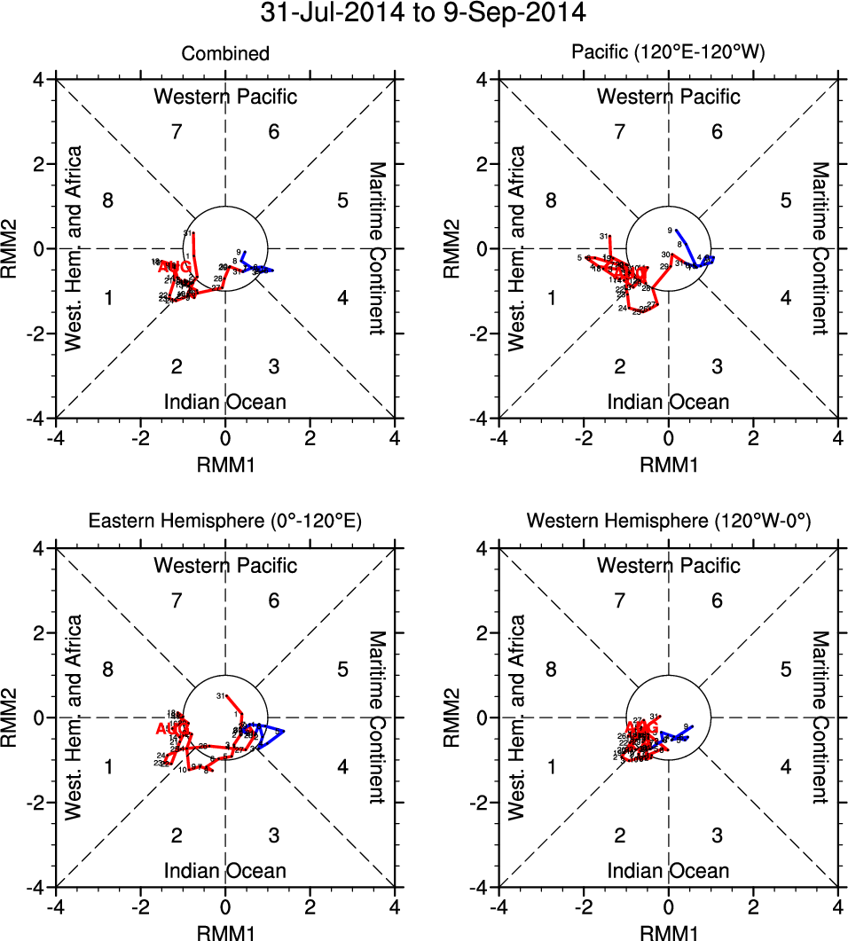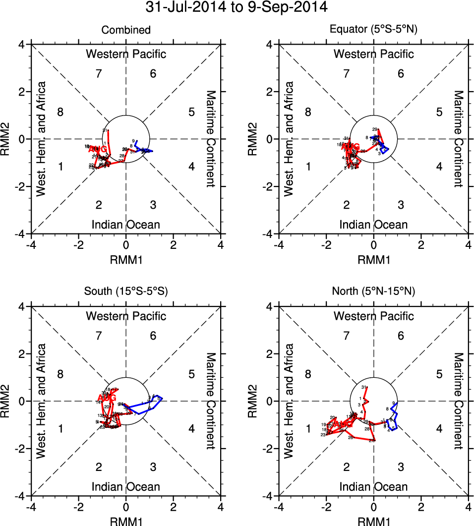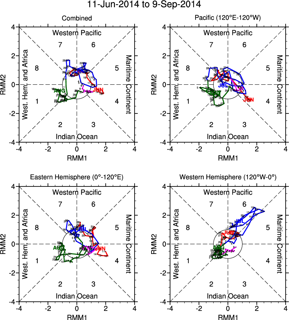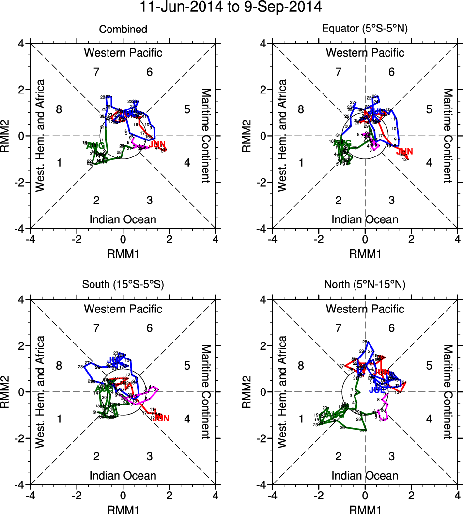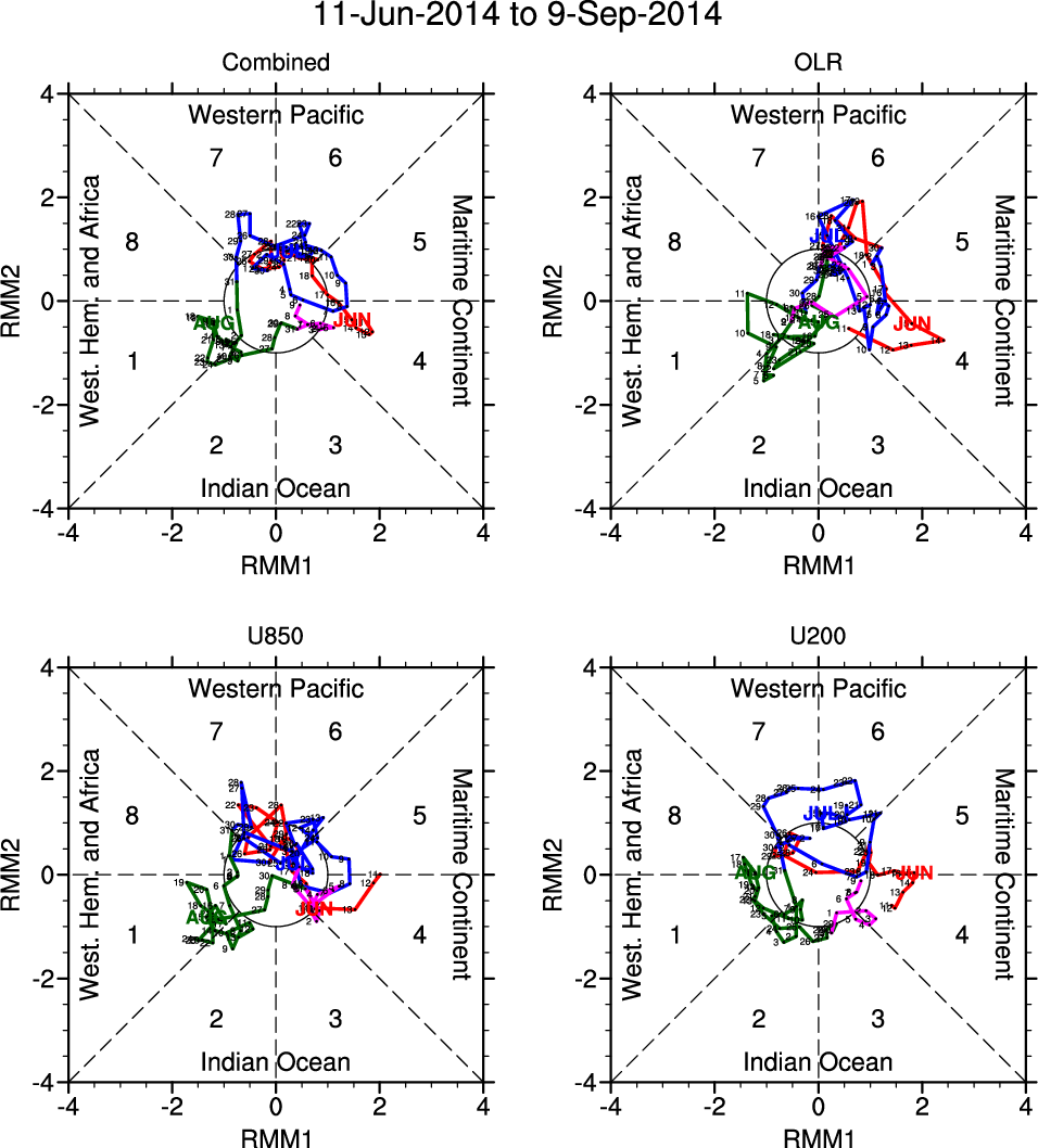 Wheeler and Hendon (2004) constructed the RMM index for monitoring the MJO. This index consists of the first two principal components (PCs) of OLR, 850-hPa zonal wind, and 200-hPa zonal wind averaged 15S-15N.
