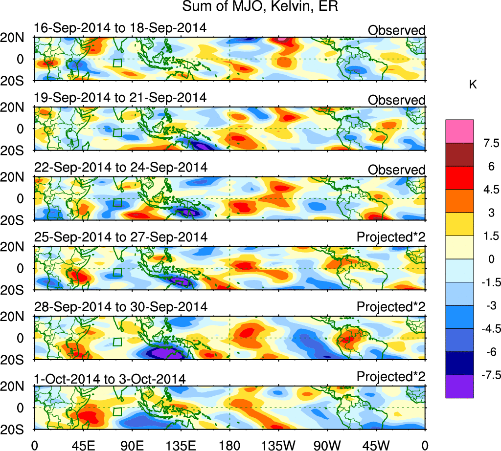 Julian Oscillation (MJO) Blue Eastward 0–9 30–96 n/a Kiladis et al. (2005 JAS)
