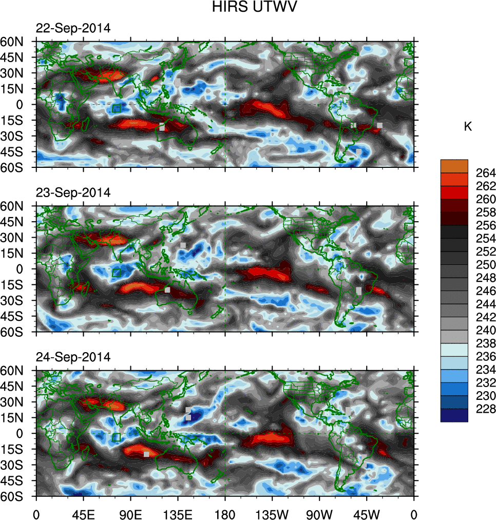• These brightness temperatures are observed with the HIRS sensor on the NOAA and MetOp polar-orbiting satellites.