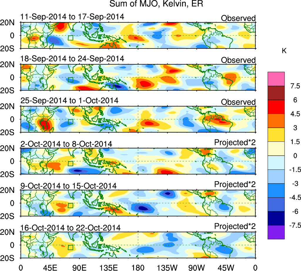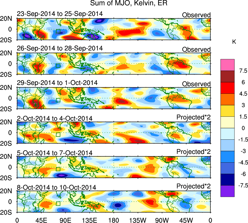 Julian Oscillation (MJO) Blue Eastward 0–9 30–96 n/a Kiladis et al. (2005 JAS)