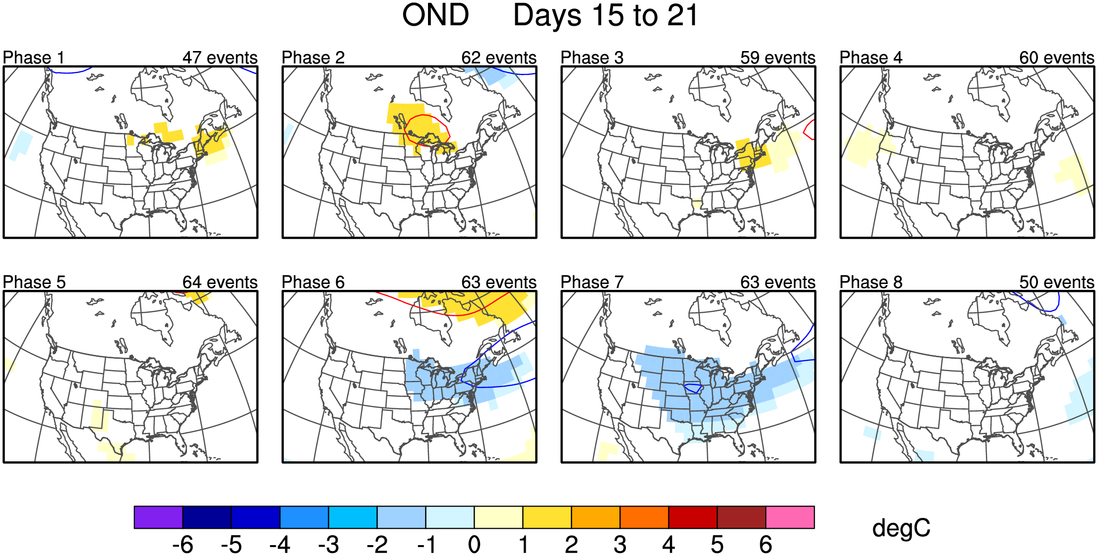 Maps of 500-hPa geopotential height anomalies (contoured every 30 m) and significant 850-hPa temperature anomalies, as shown in Schreck et al. (2013).