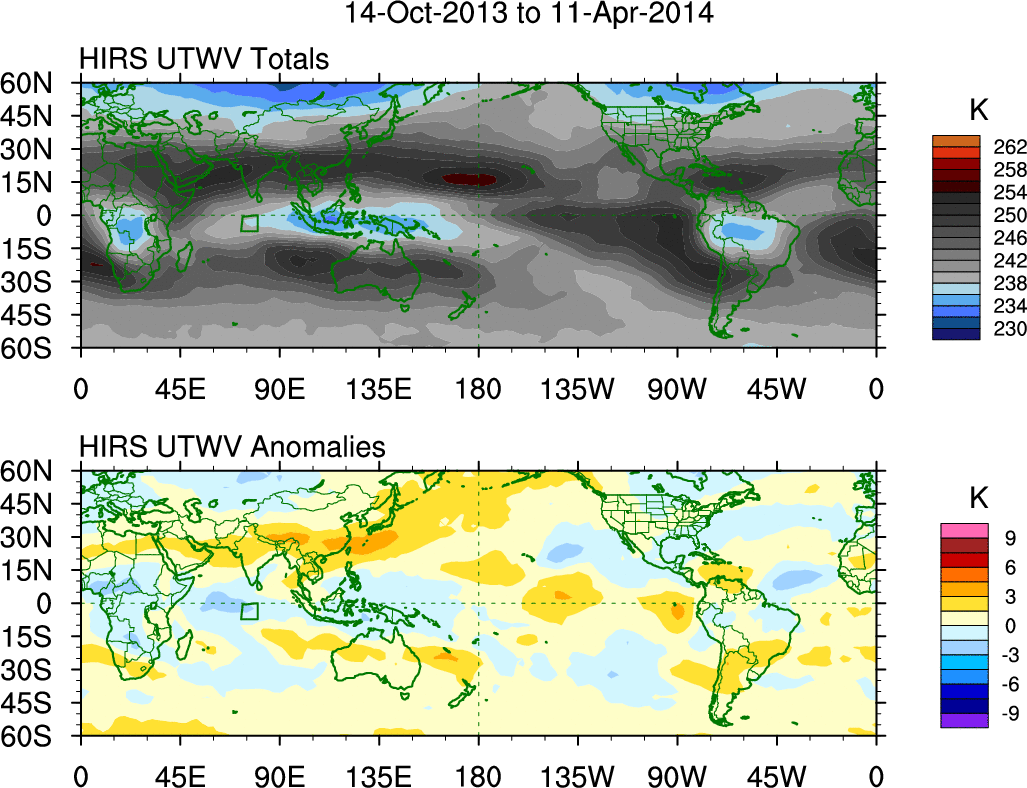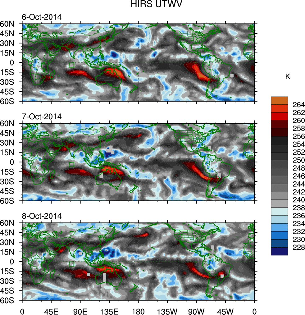 • These brightness temperatures are observed with the HIRS sensor on the NOAA and MetOp polar-orbiting satellites.