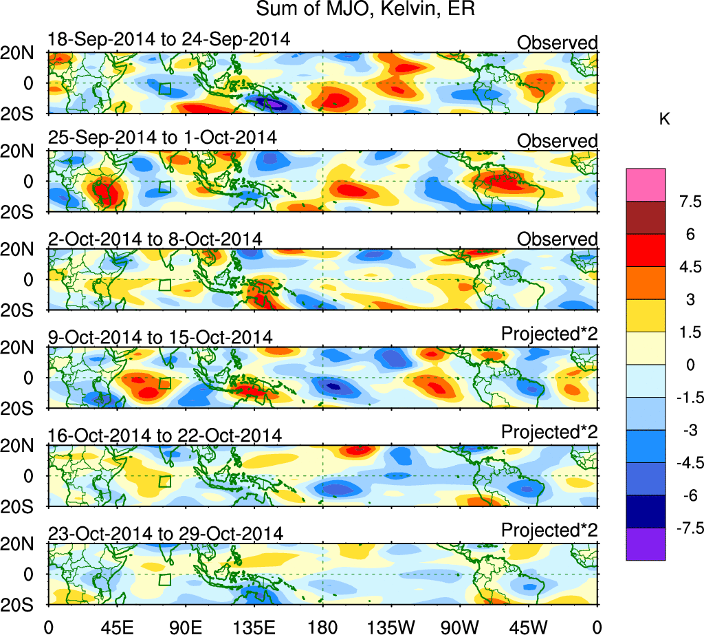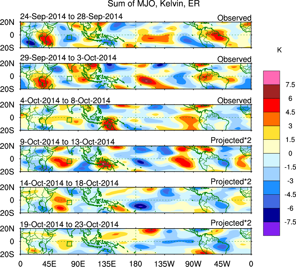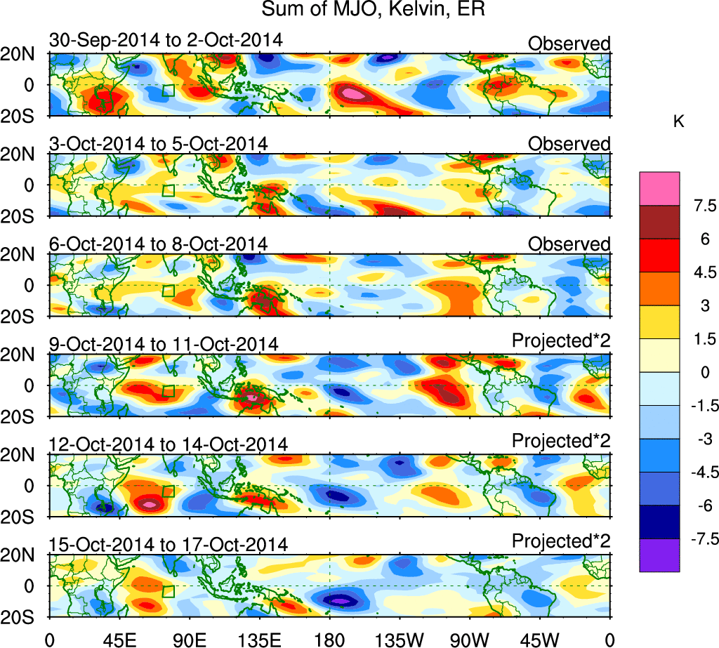 Julian Oscillation (MJO) Blue Eastward 0–9 30–96 n/a Kiladis et al. (2005 JAS)