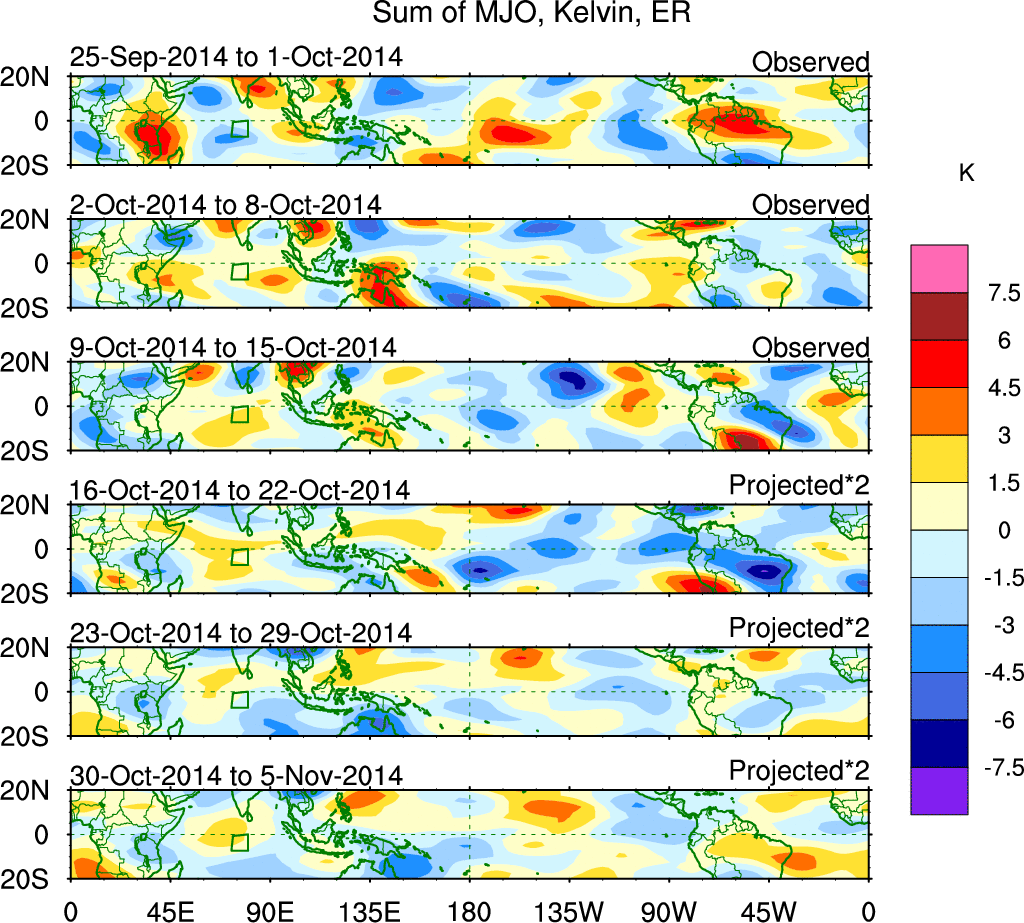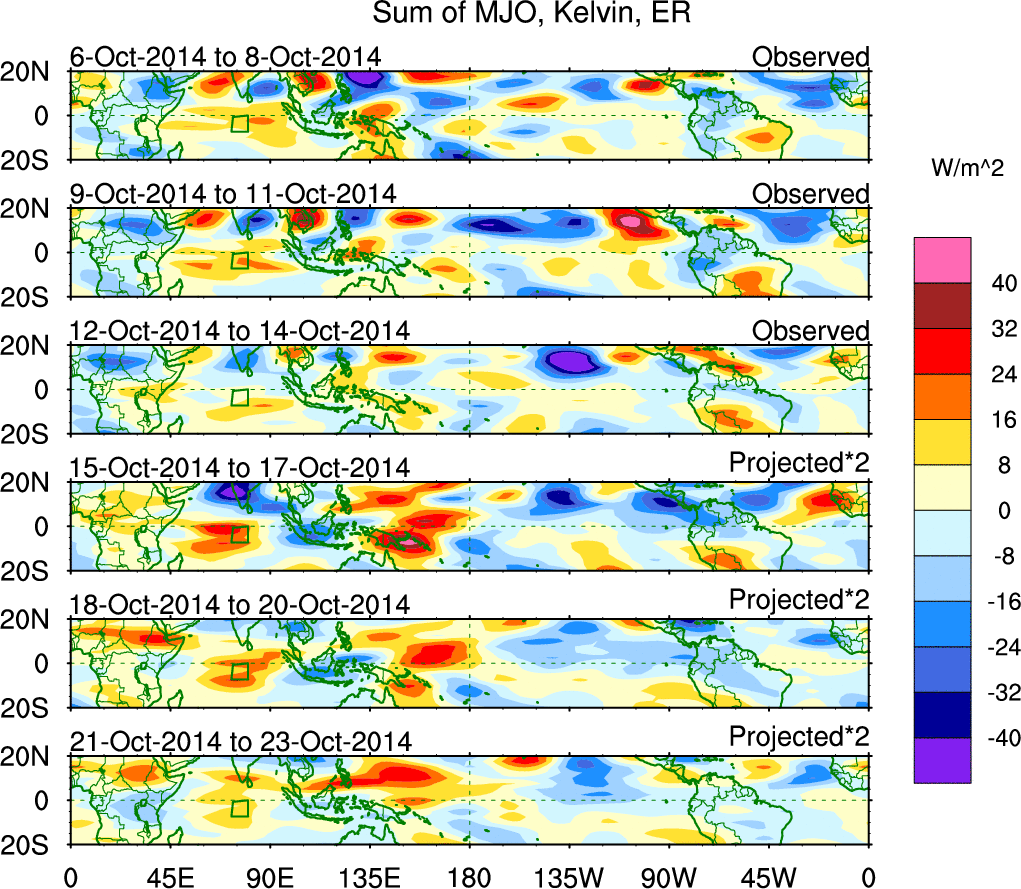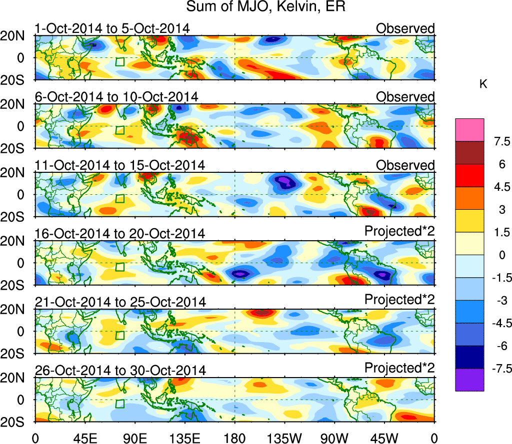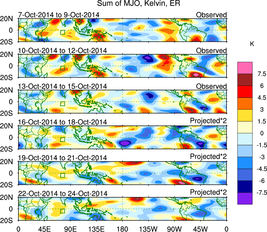 Julian Oscillation (MJO) Blue Eastward 0–9 30–96 n/a Kiladis et al. (2005 JAS)