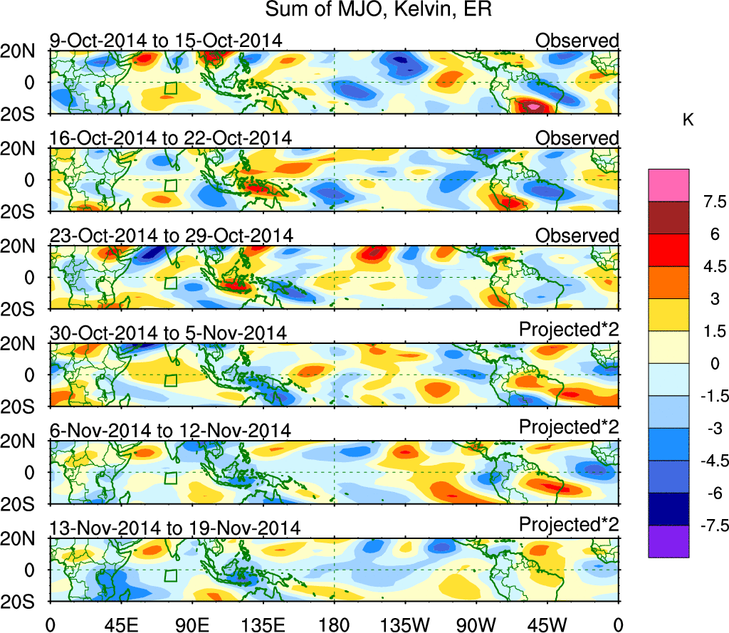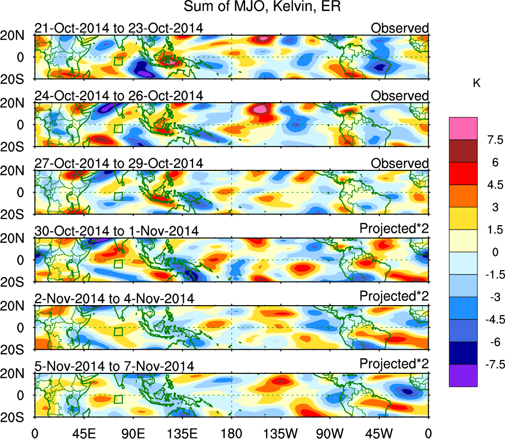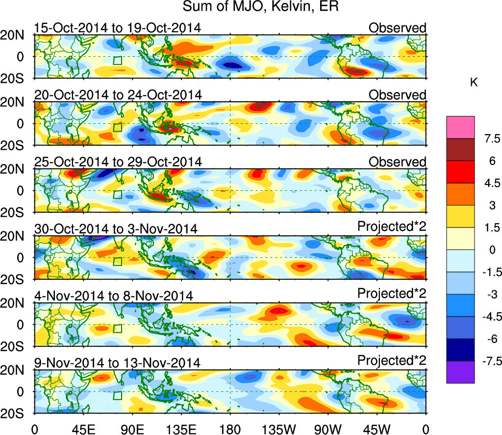 Julian Oscillation (MJO) Blue Eastward 0–9 30–96 n/a Kiladis et al. (2005 JAS)