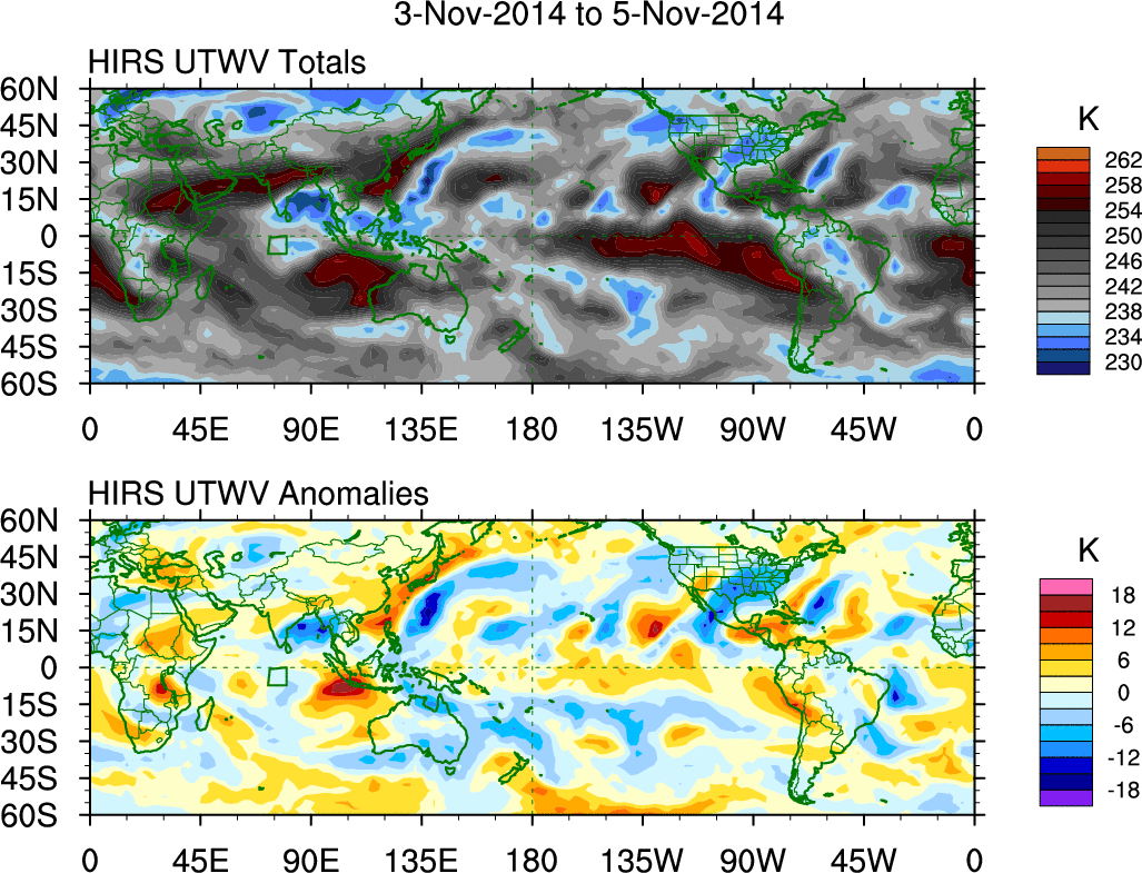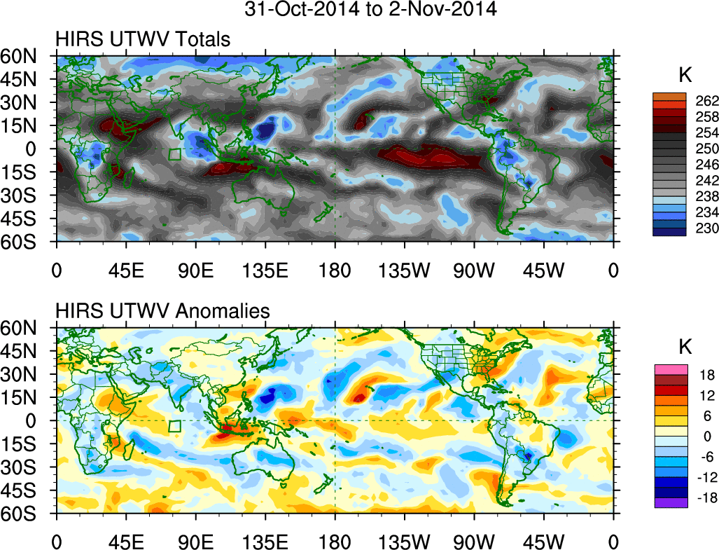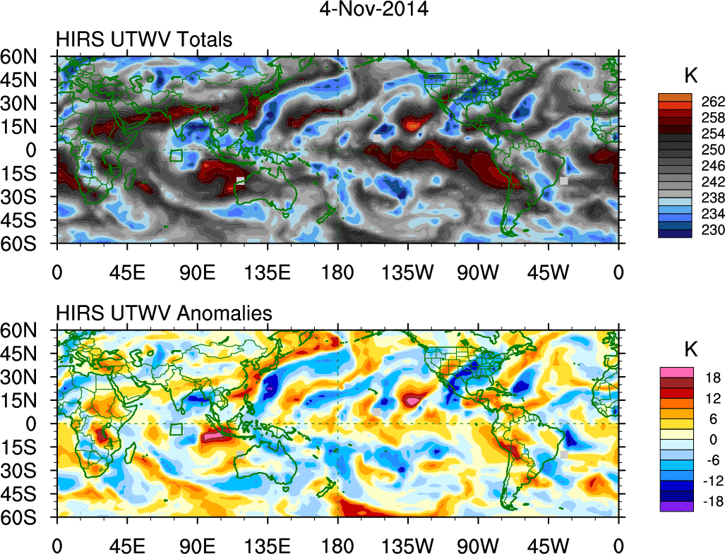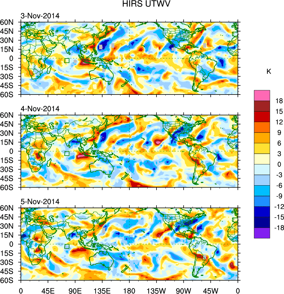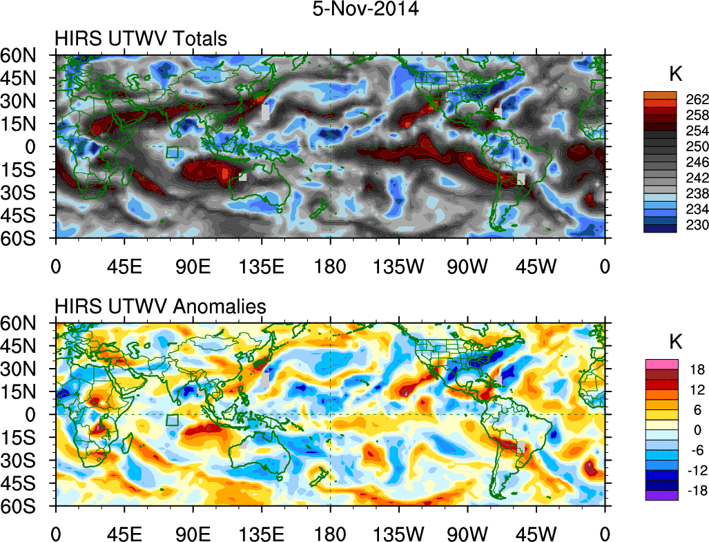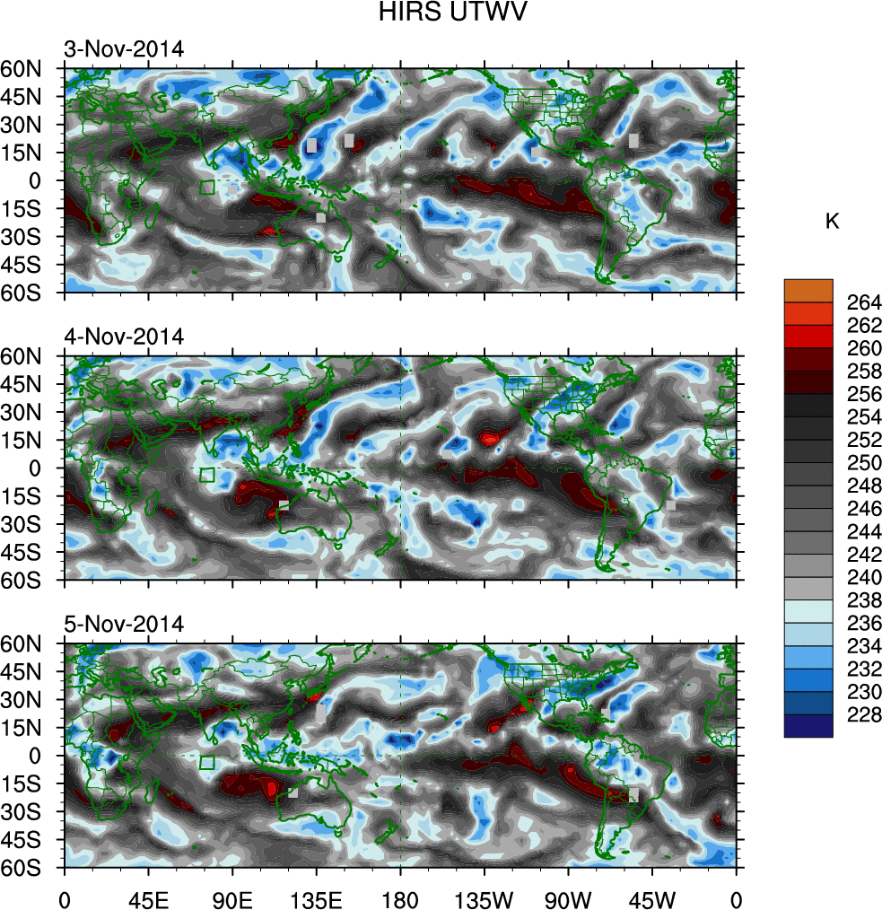 • These brightness temperatures are observed with the HIRS sensor on the NOAA and MetOp polar-orbiting satellites.