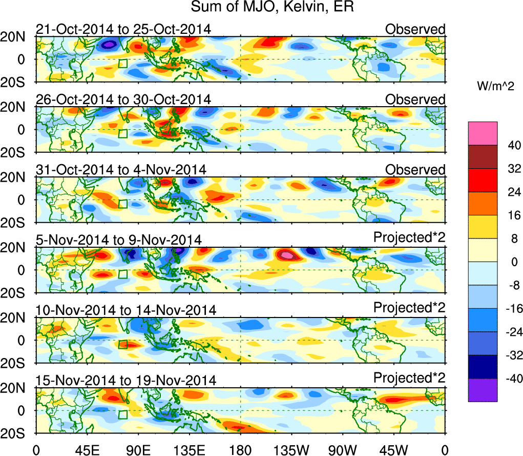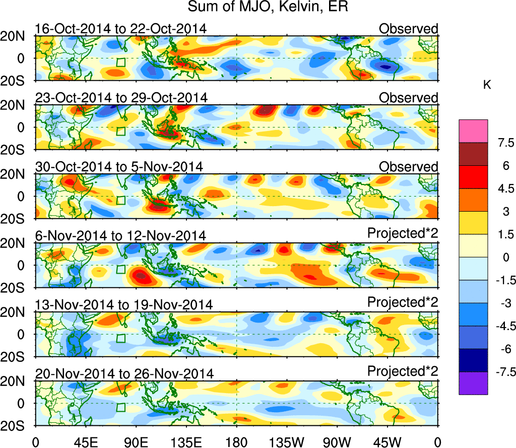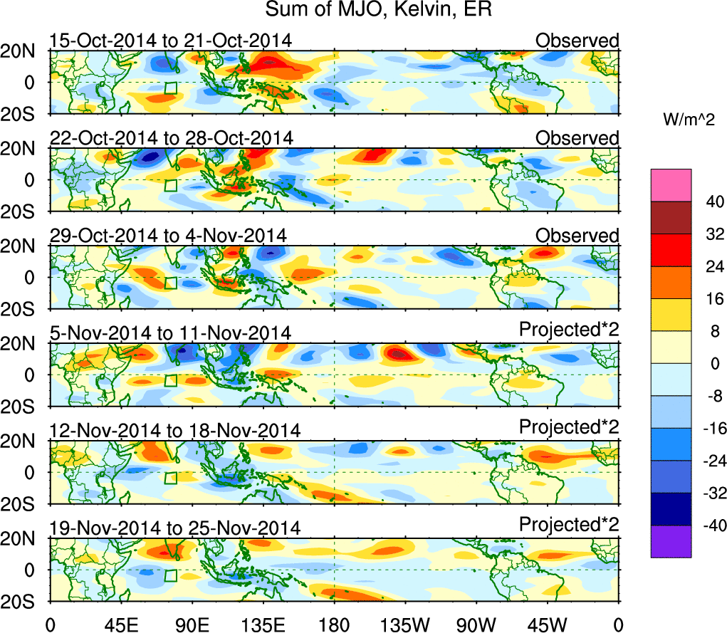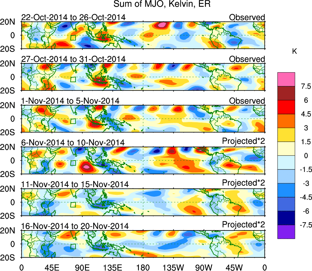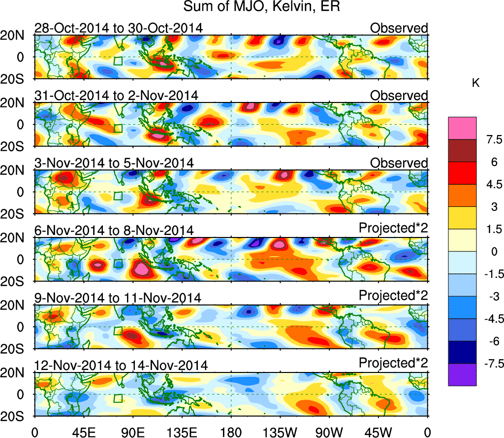 Julian Oscillation (MJO) Blue Eastward 0–9 30–96 n/a Kiladis et al. (2005 JAS)