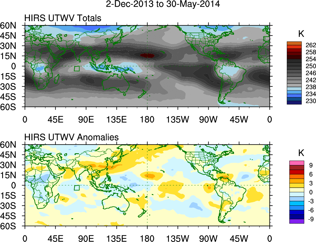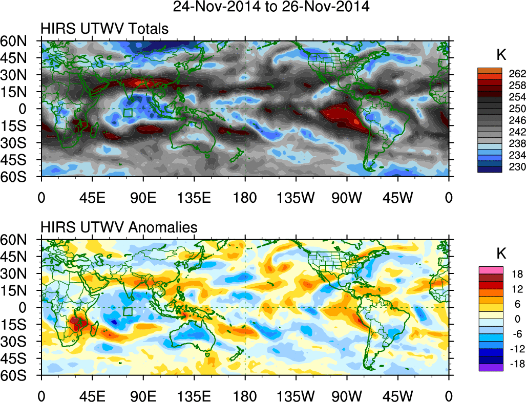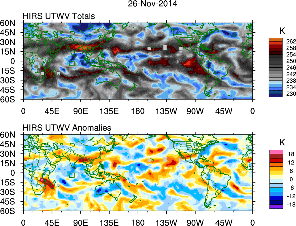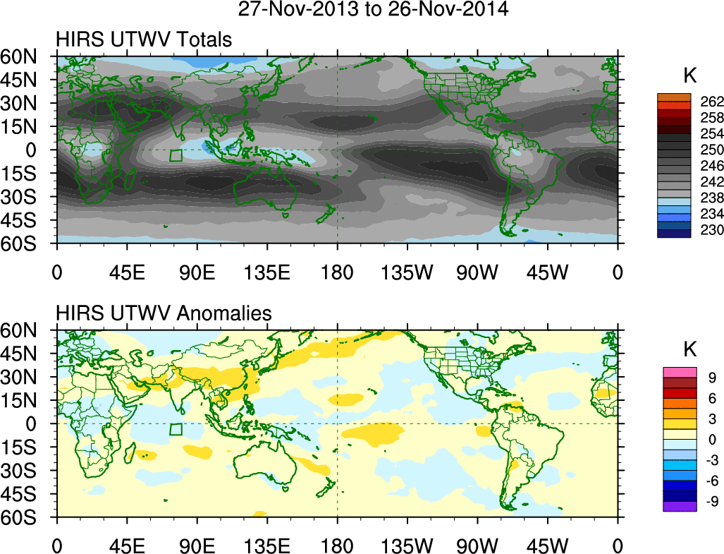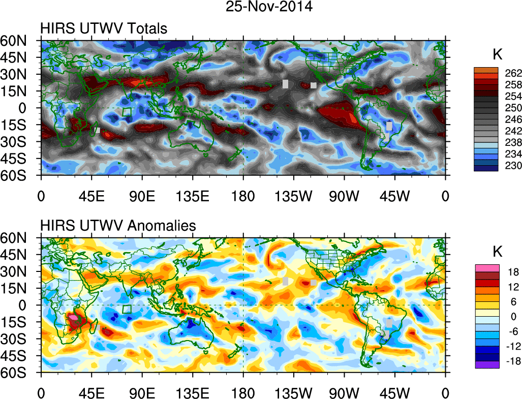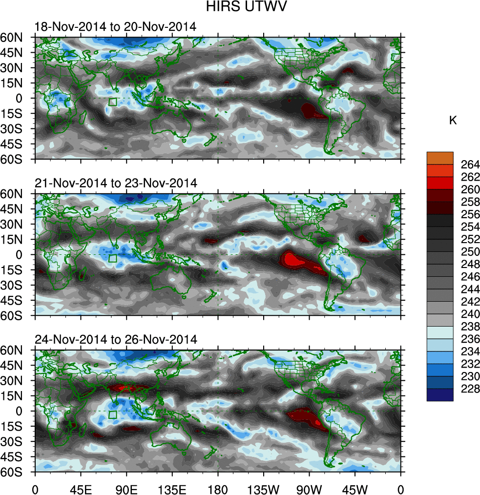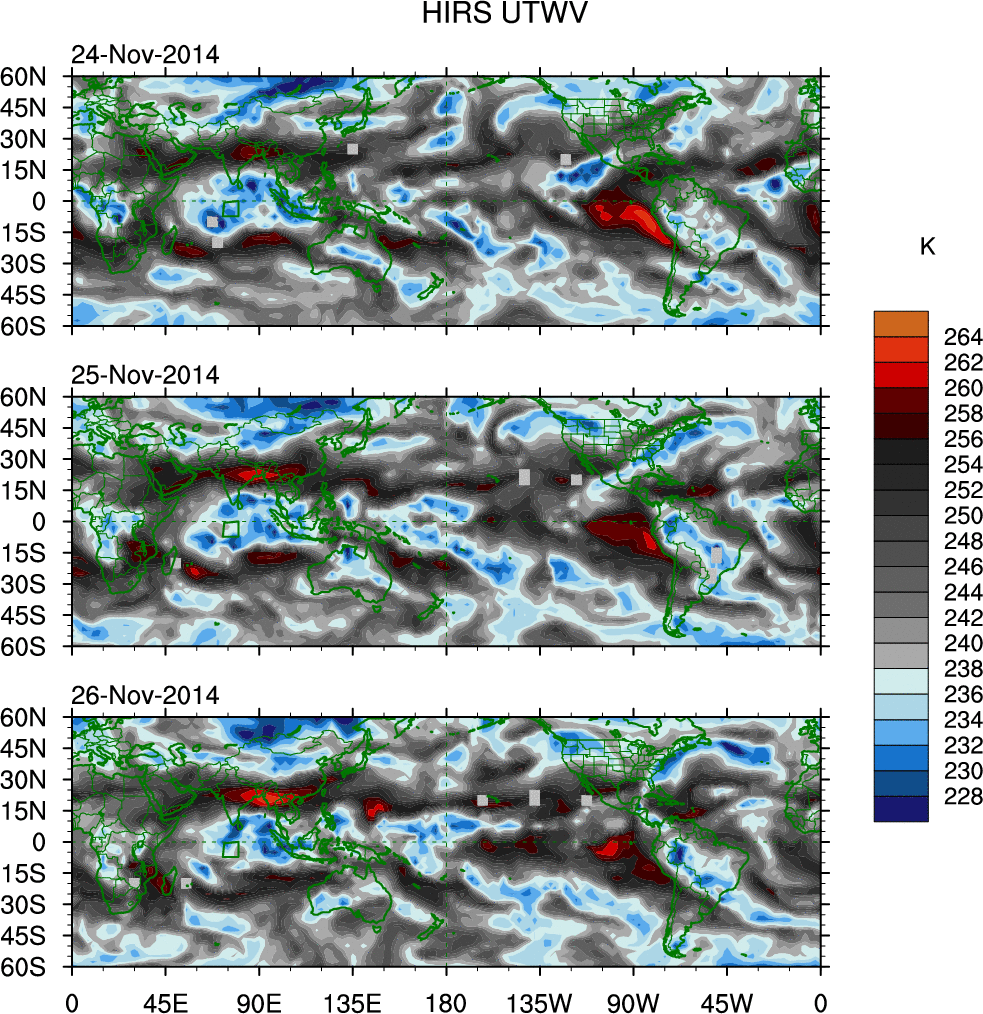 • These brightness temperatures are observed with the HIRS sensor on the NOAA and MetOp polar-orbiting satellites.