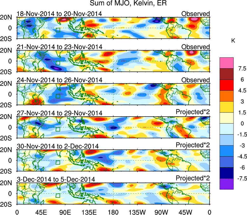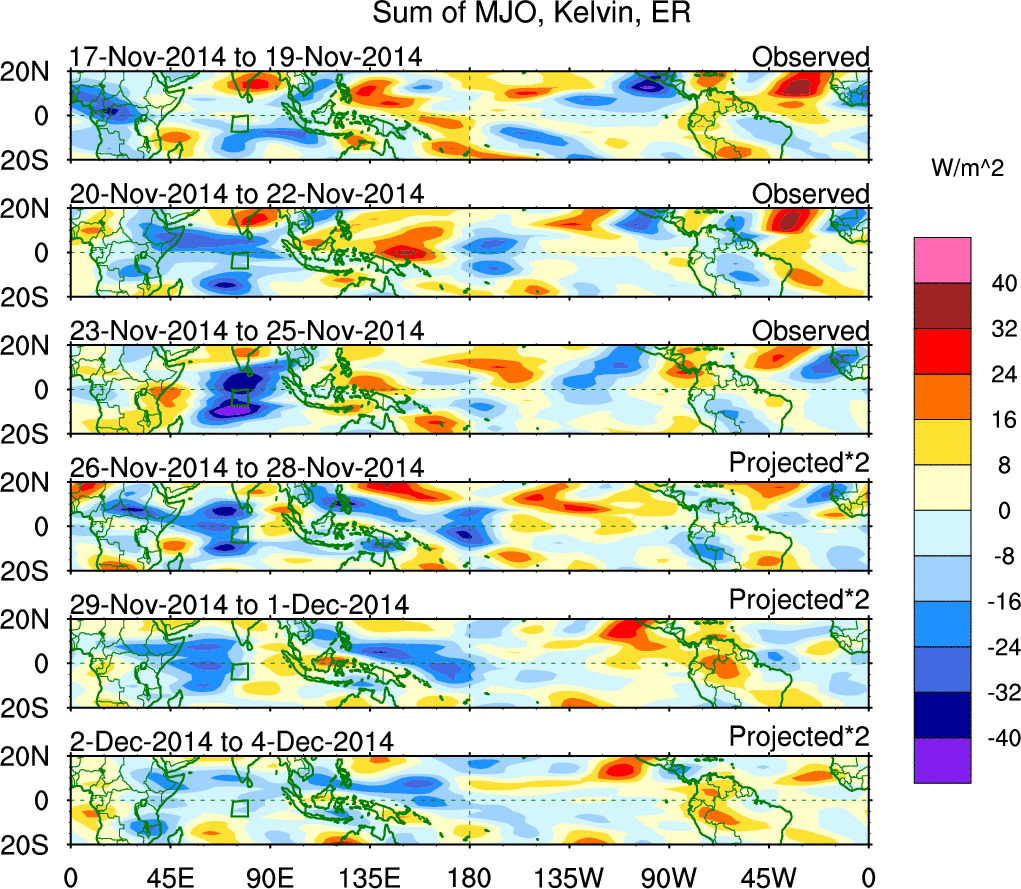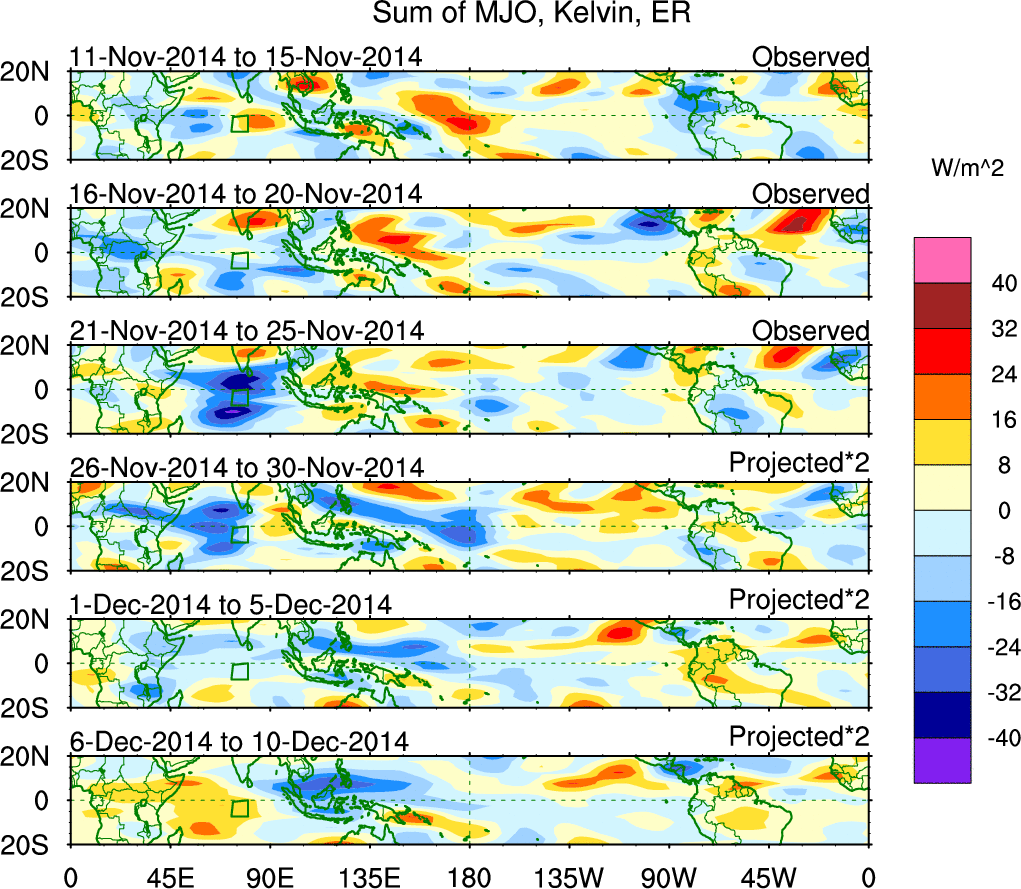 Julian Oscillation (MJO) Blue Eastward 0–9 30–96 n/a Kiladis et al. (2005 JAS)