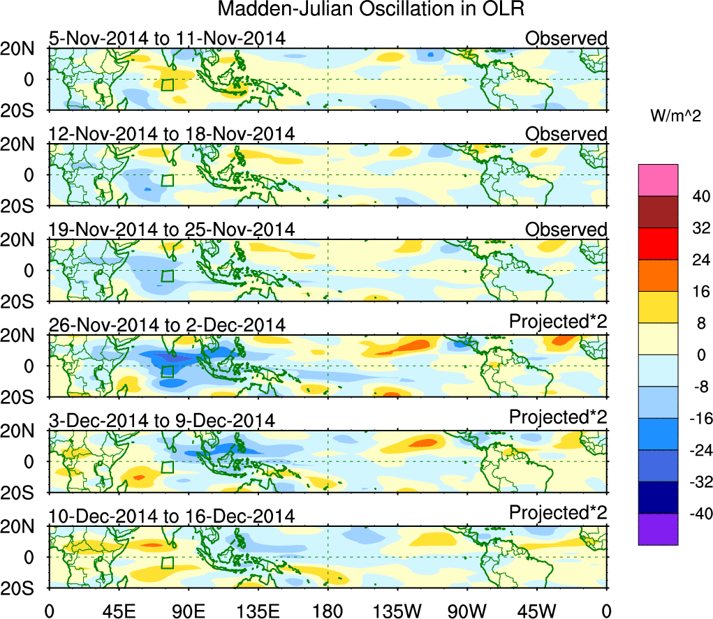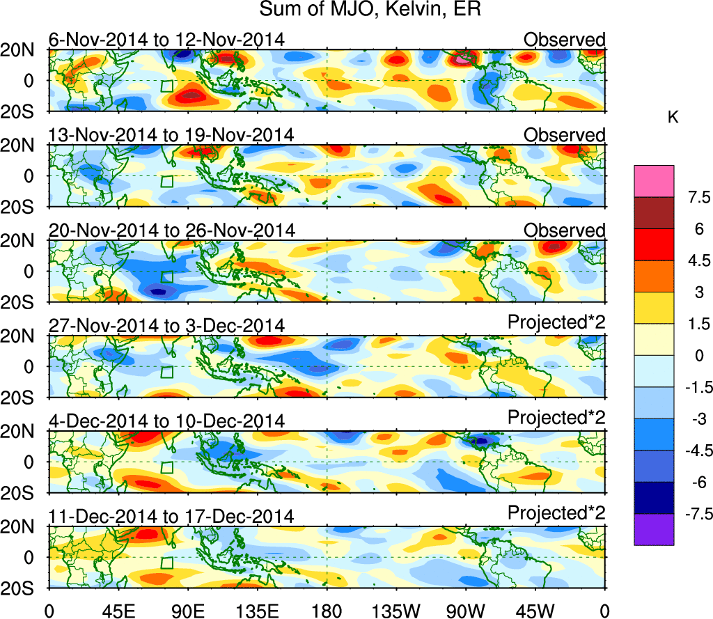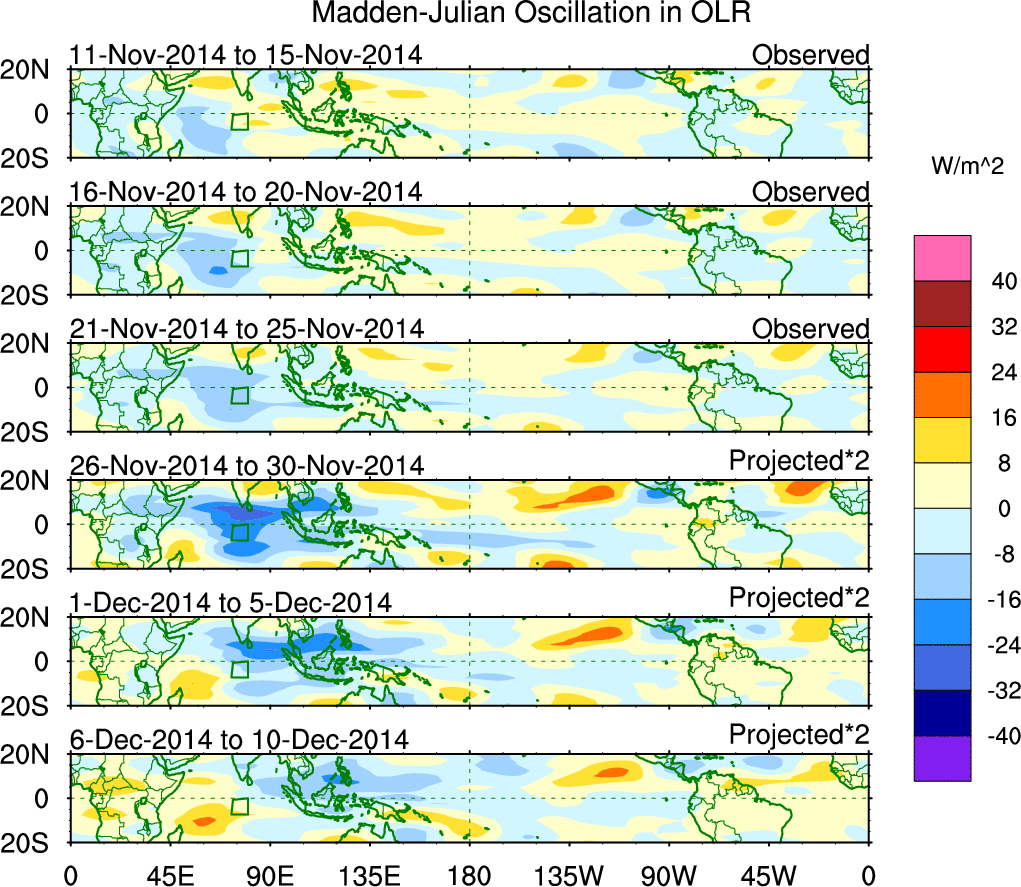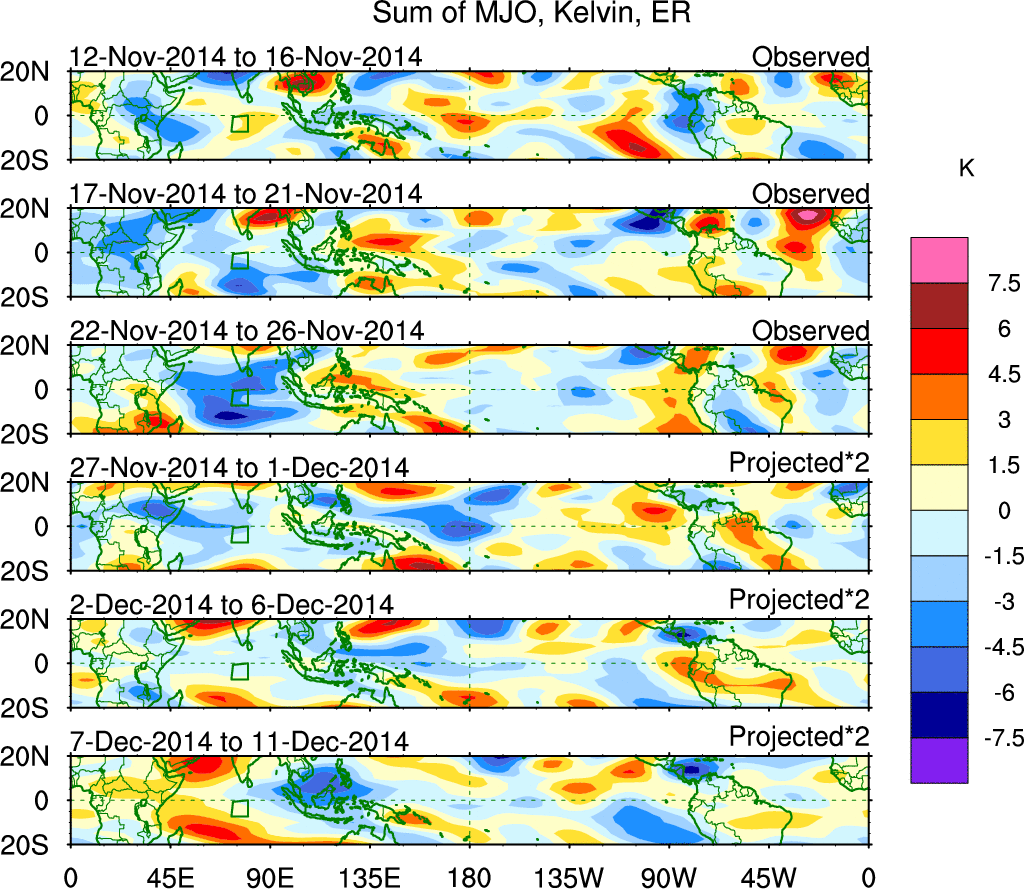 Julian Oscillation (MJO) Blue Eastward 0–9 30–96 n/a Kiladis et al. (2005 JAS)