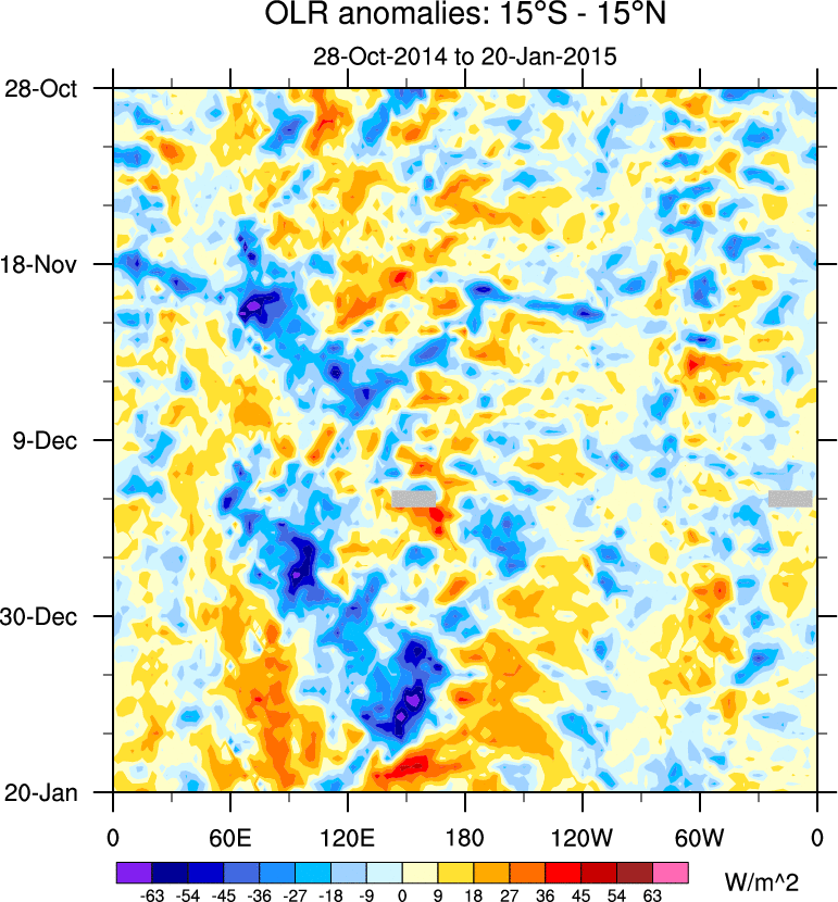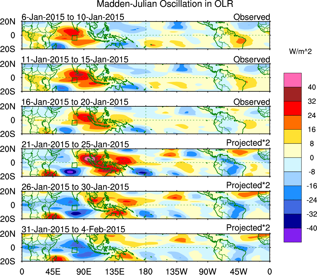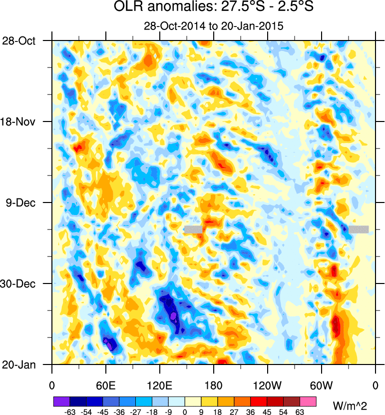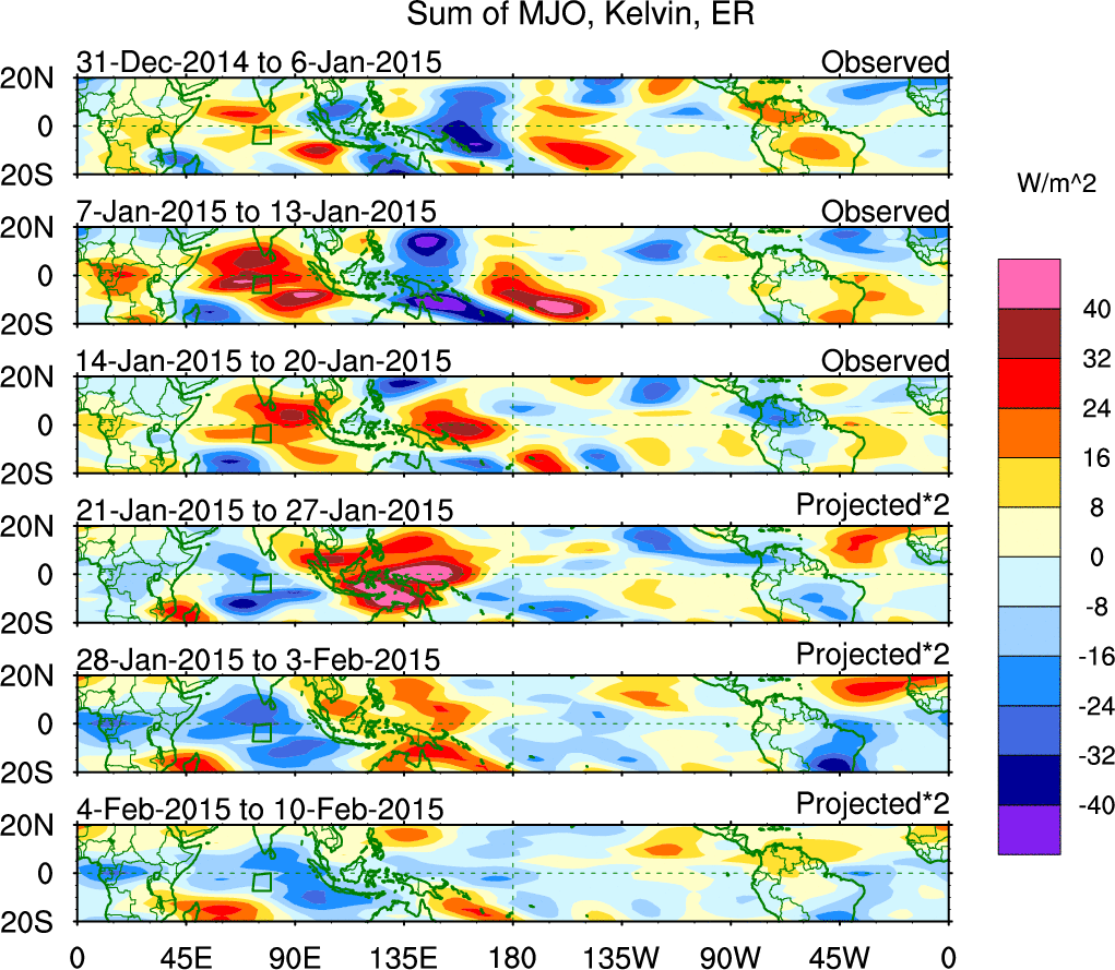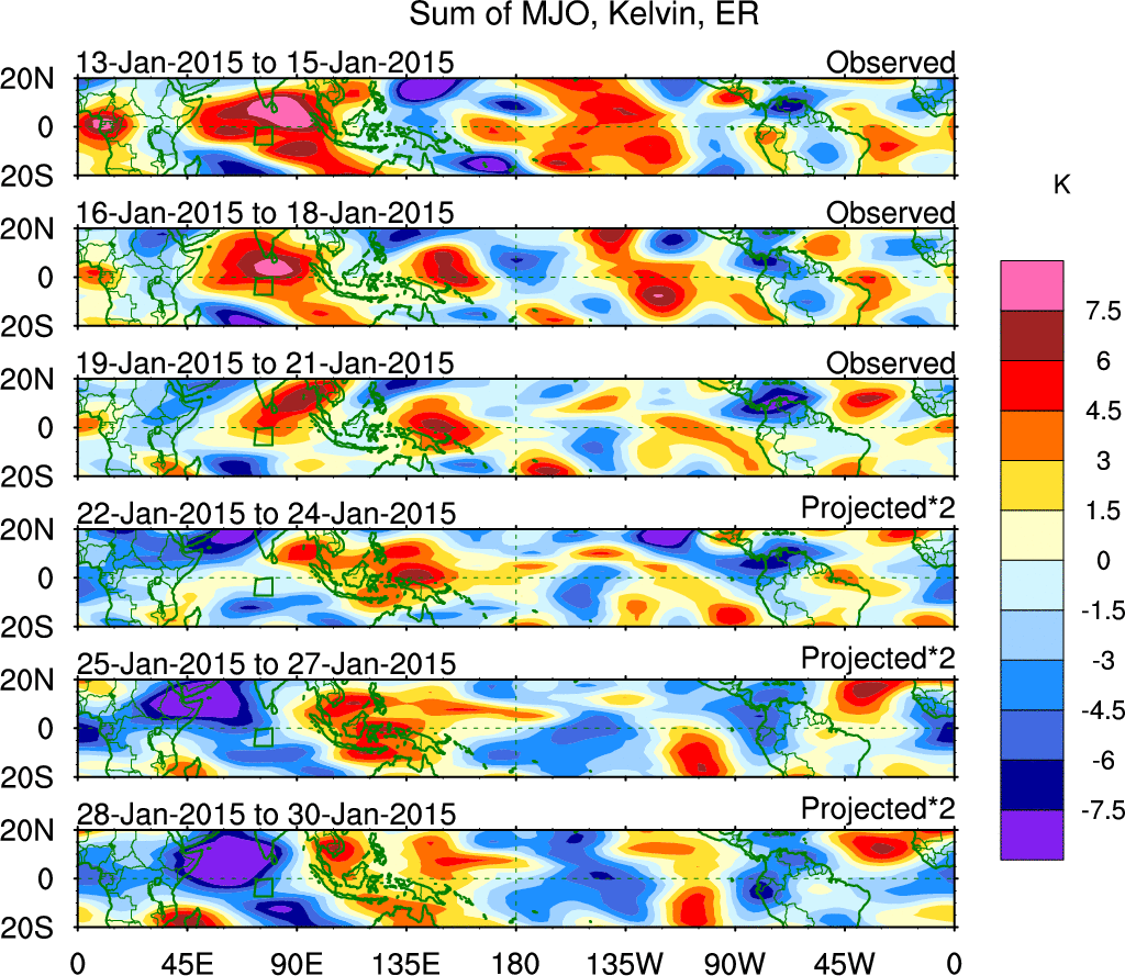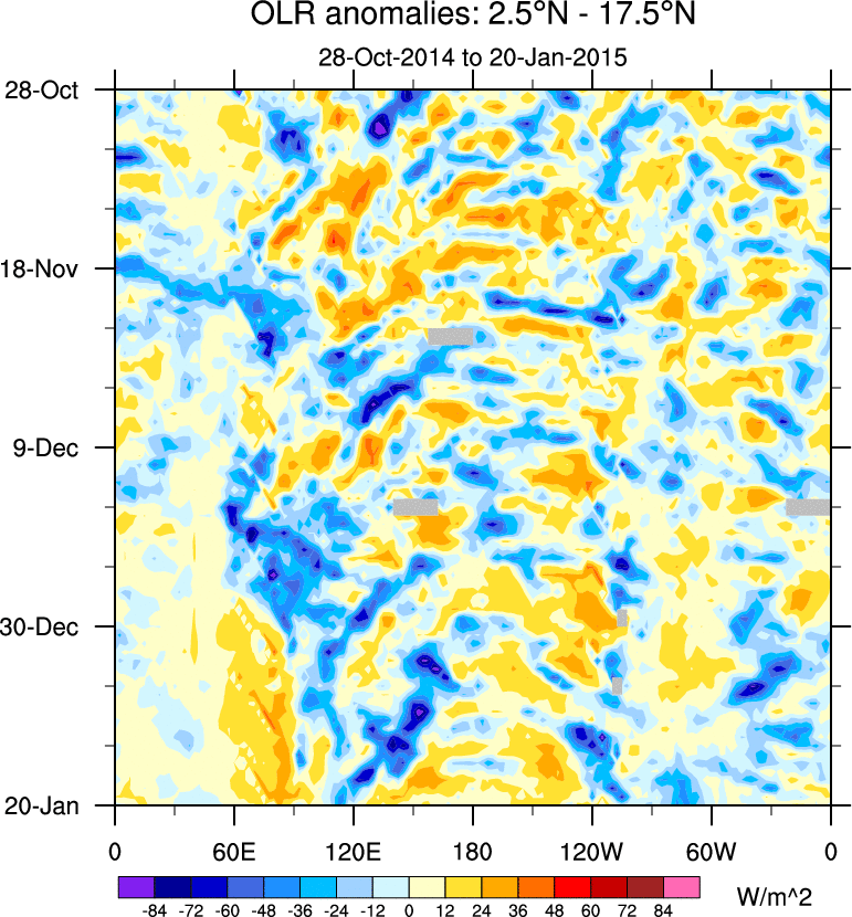 Julian Oscillation (MJO) Blue Eastward 0–9 30–96 n/a Kiladis et al. (2005 JAS)