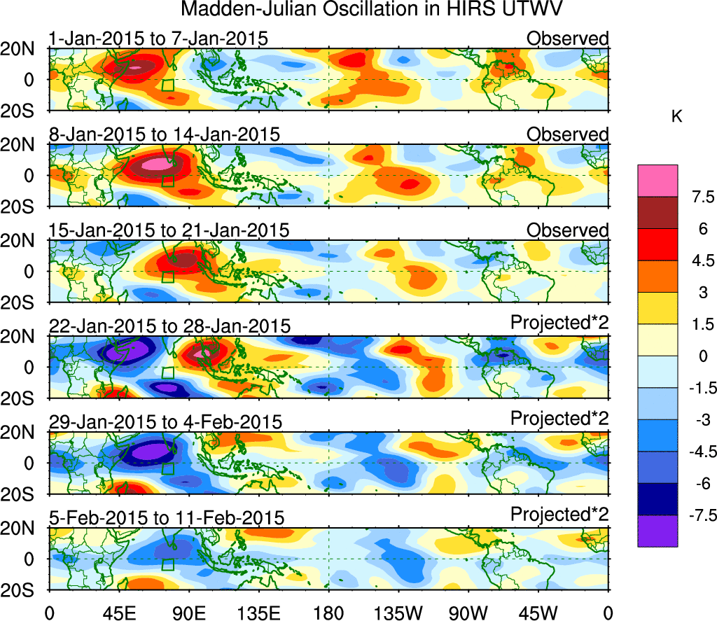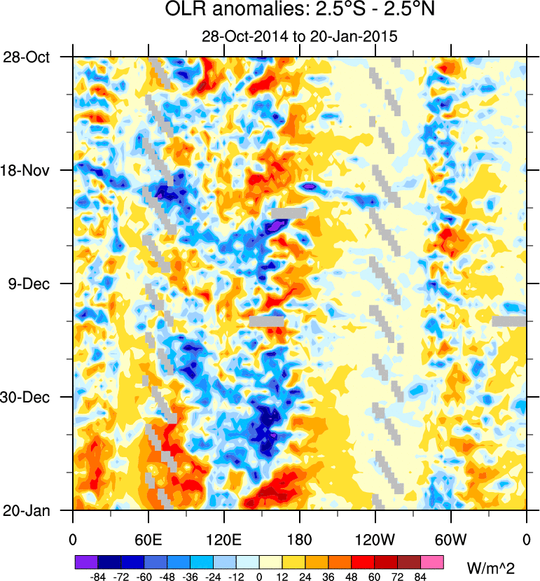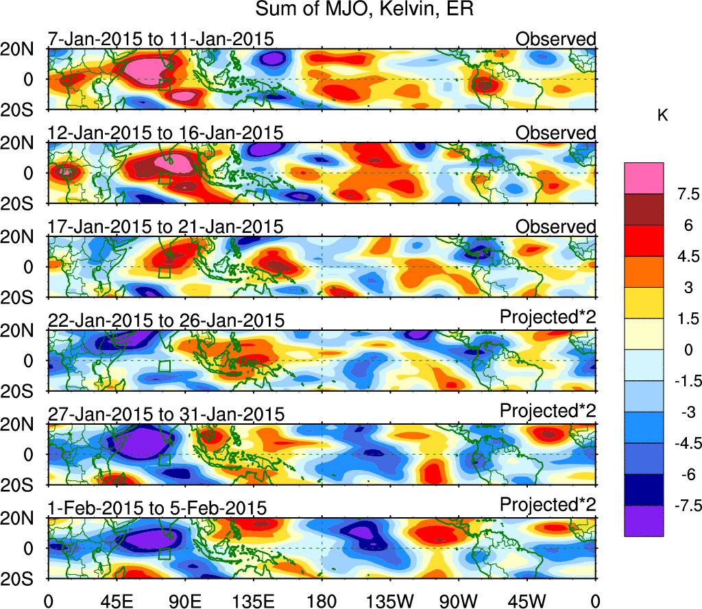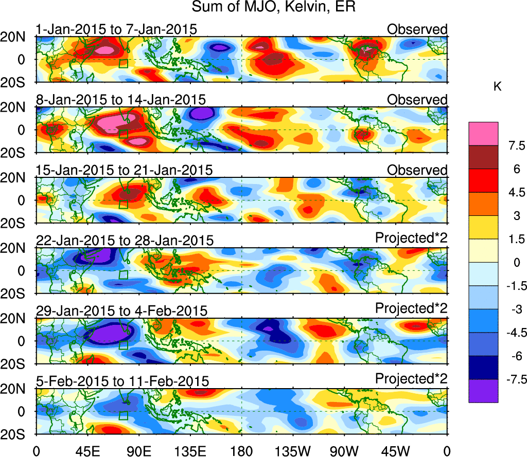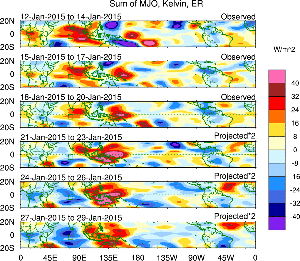 Julian Oscillation (MJO) Blue Eastward 0–9 30–96 n/a Kiladis et al. (2005 JAS)