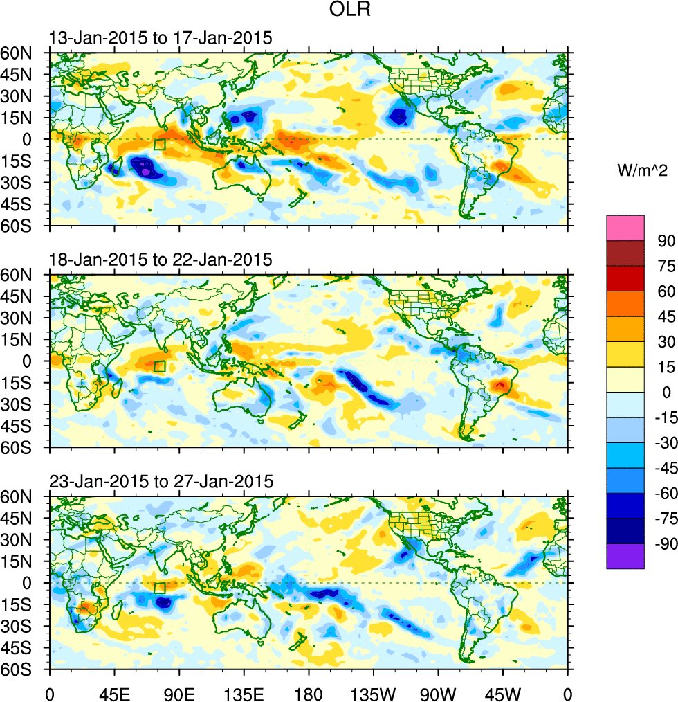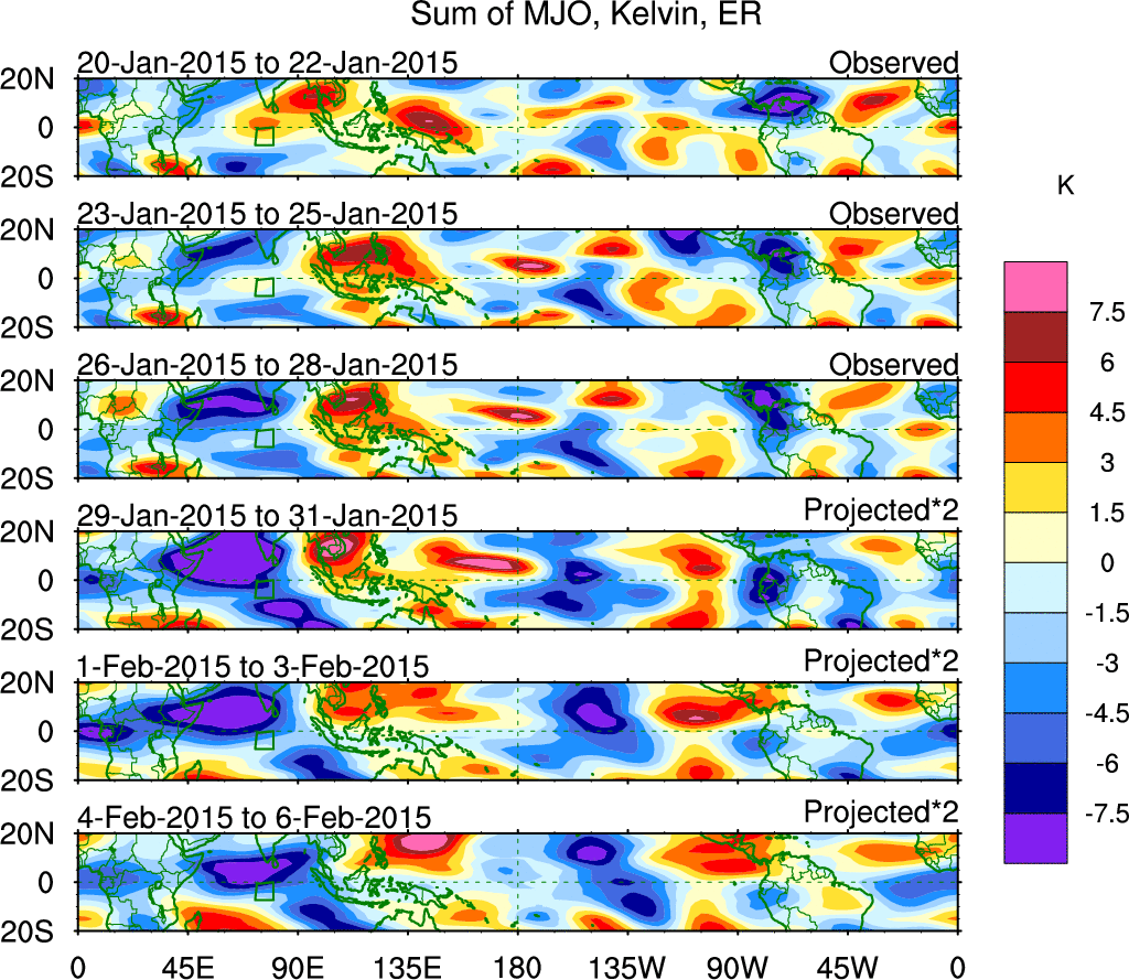 Julian Oscillation (MJO) Blue Eastward 0–9 30–96 n/a Kiladis et al. (2005 JAS)