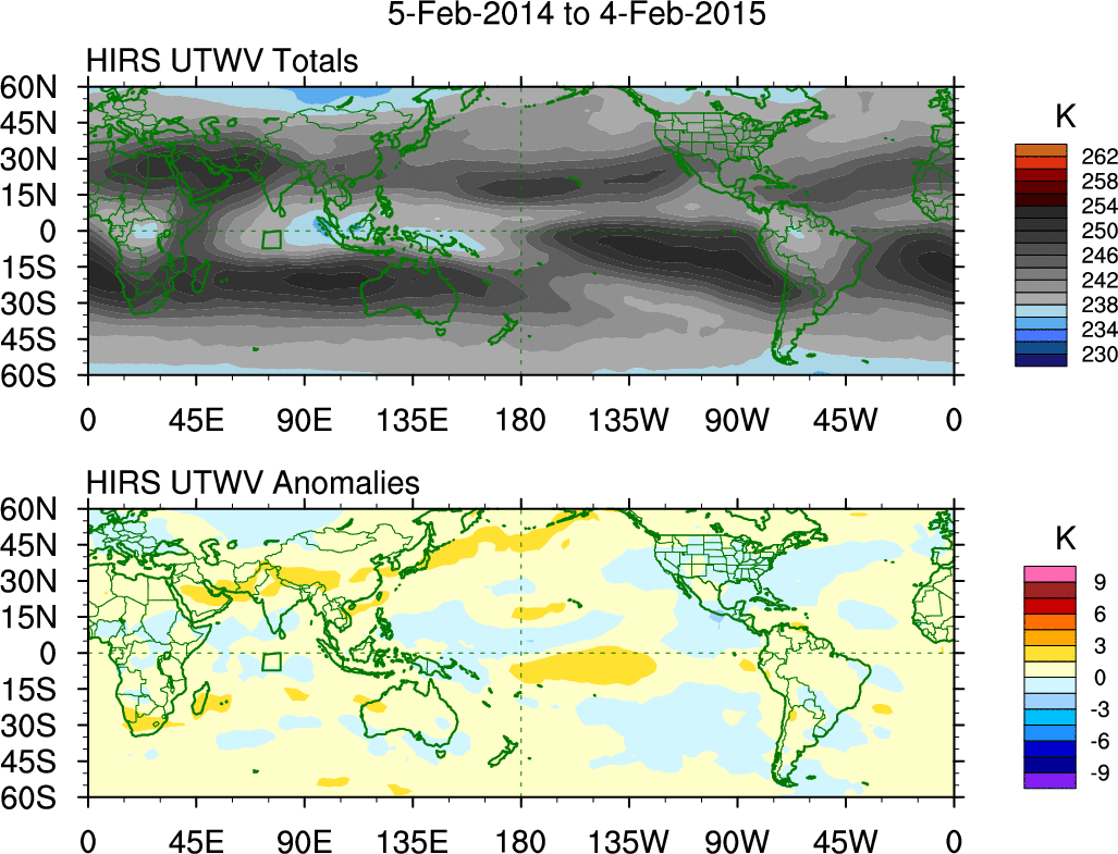 • These brightness temperatures are observed with the HIRS sensor on the NOAA and MetOp polar-orbiting satellites.