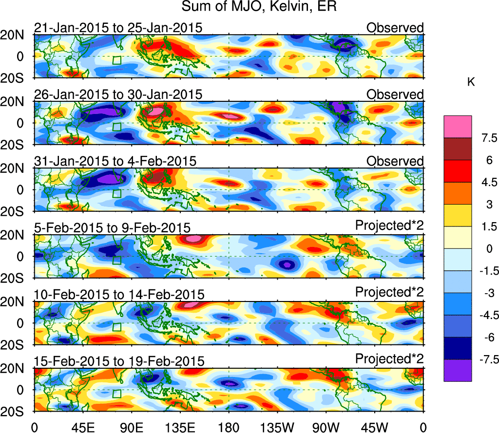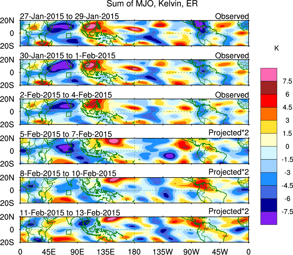 Julian Oscillation (MJO) Blue Eastward 0–9 30–96 n/a Kiladis et al. (2005 JAS)